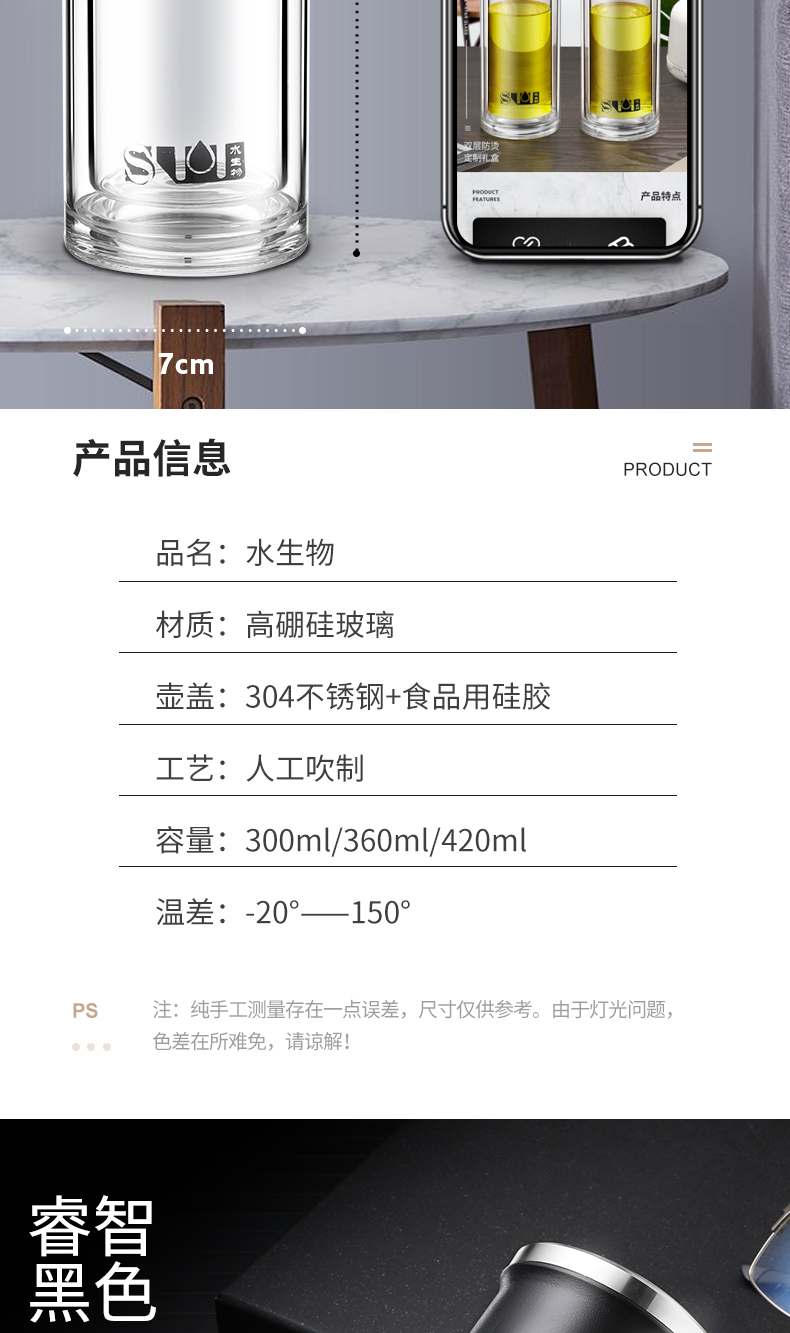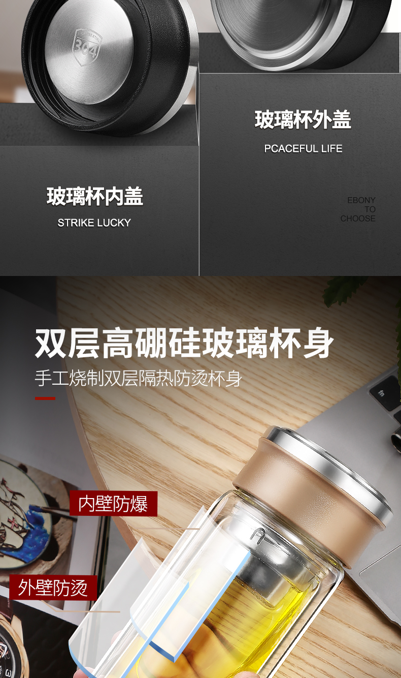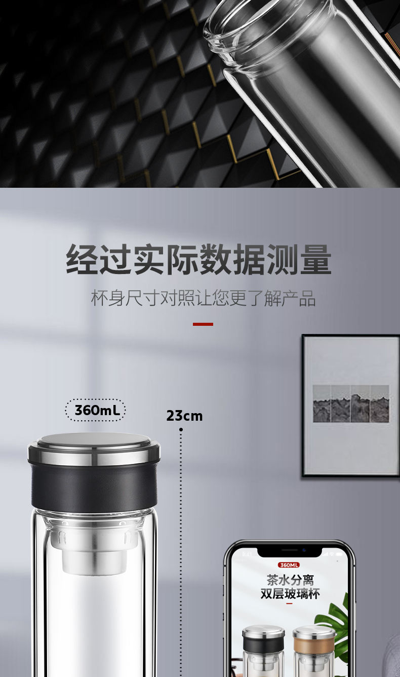 水生物玻璃带滤网男泡茶高档茶水分离双层保温大容量男士便携简约