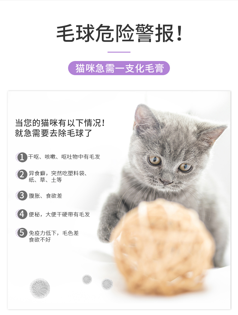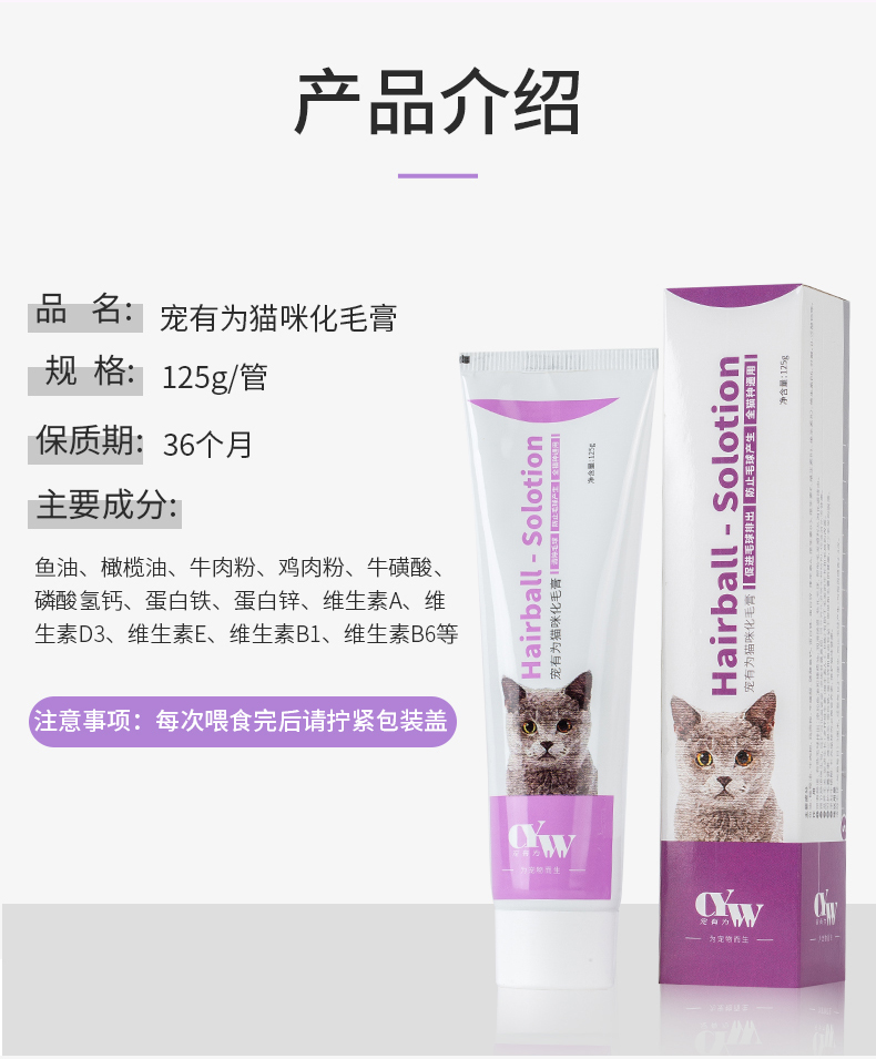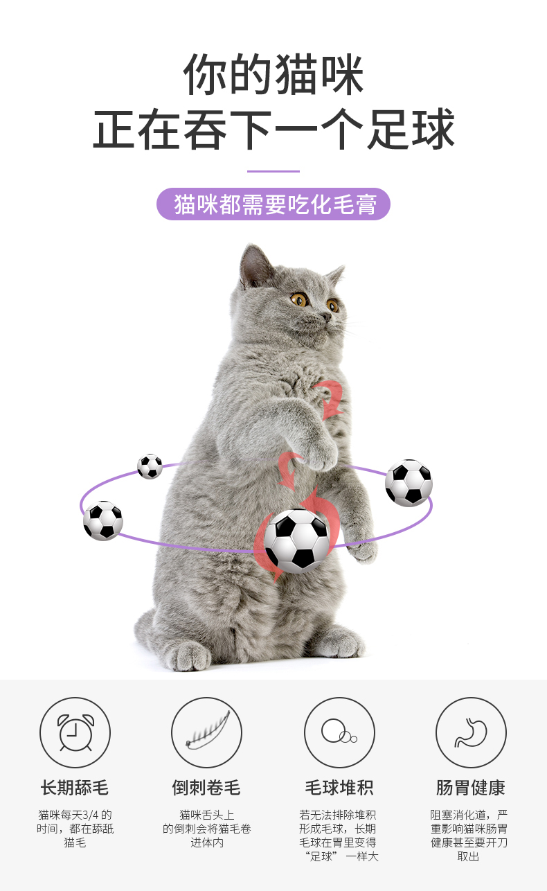 宠有为猫咪化毛膏吐毛球营养膏调理肠胃英短猫专用排毛球美毛125g