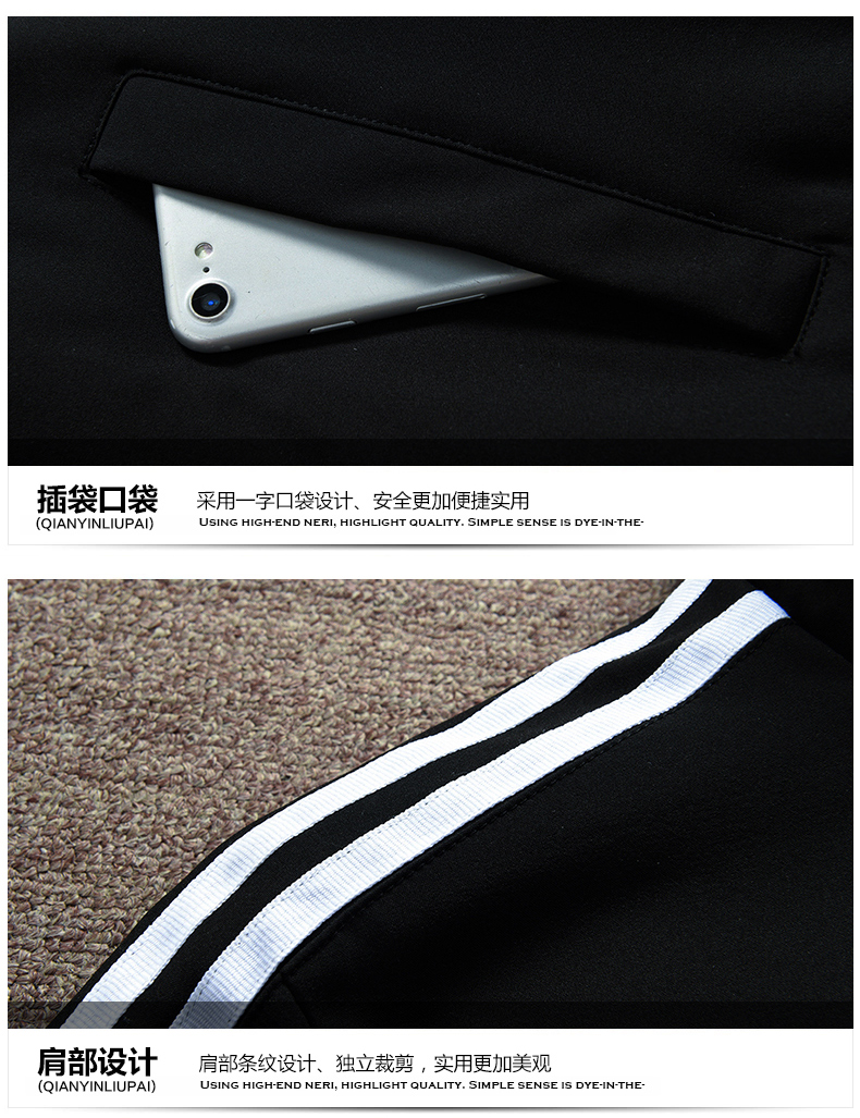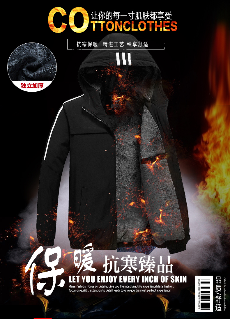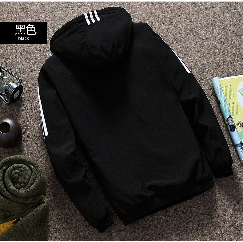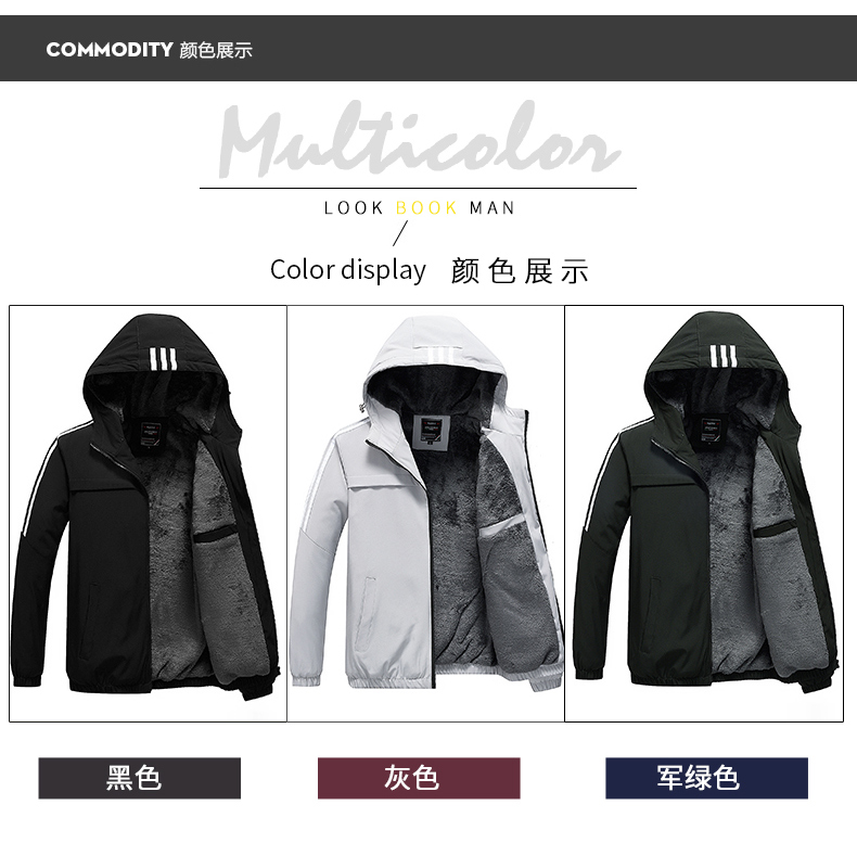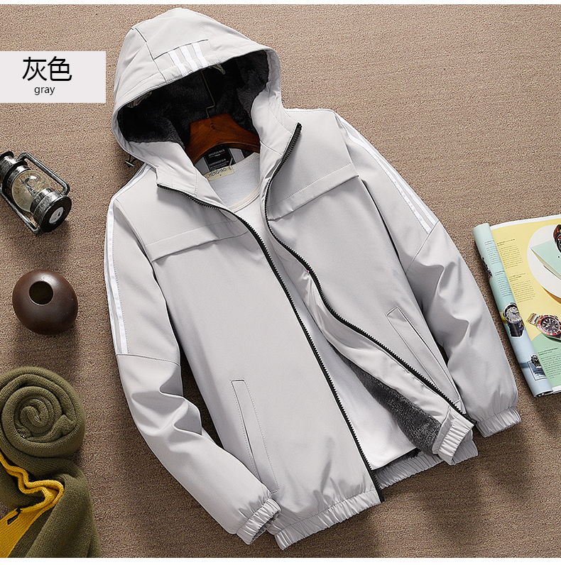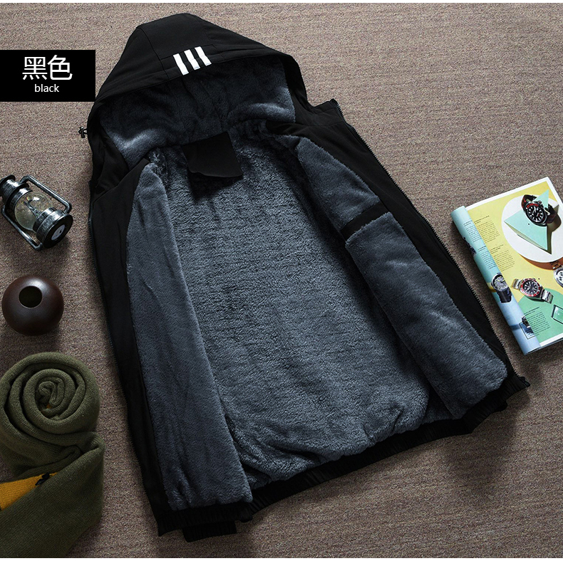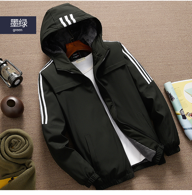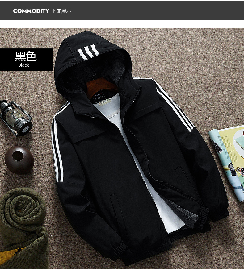 男生外套男韩版潮流加绒三条杠帅气学生社会加厚学院风夹克冬季