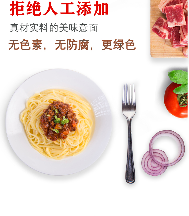味美希速食肉酱,纯正的意大利风味,博洛尼亚肉酱做法,酱粒肉眼可见,领略意式风情,鲜意面劲道柔韧,精心挑选的高原小麦,口感美好,劲道Q弹。