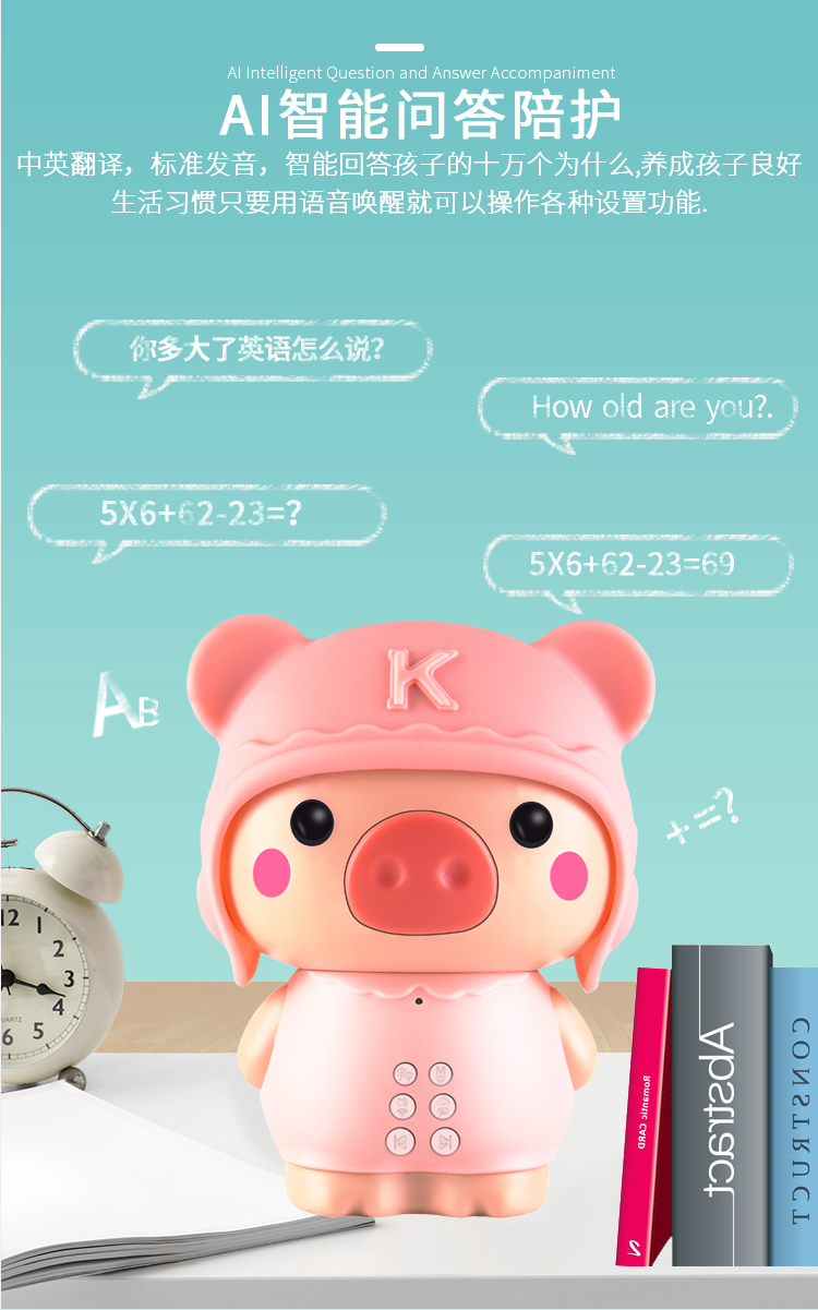 小猪智能语音对话机器人 陪伴益智玩具学习机早教机男女儿童小学生英语家教故事机对话机器人1-3-6-9岁