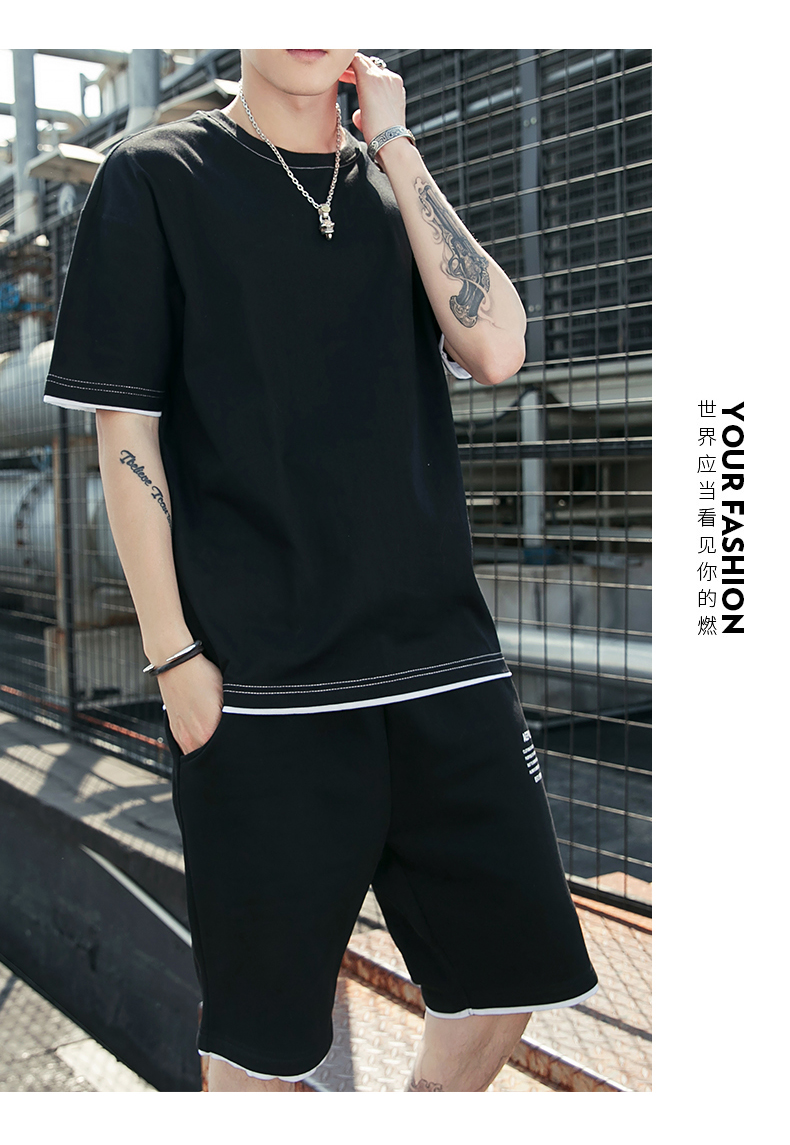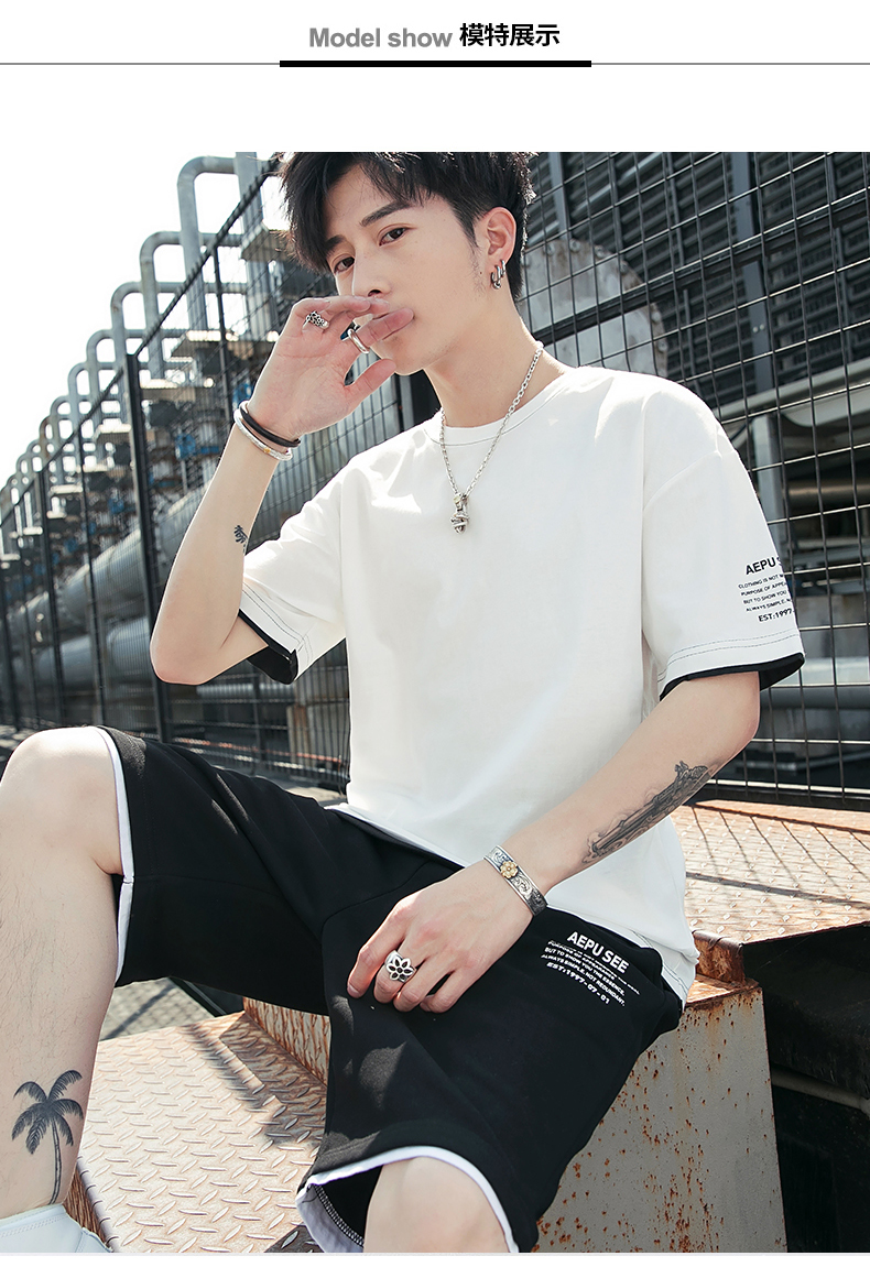潮牌半高领打底衫卫衣男日系圆领百搭外套原宿风帅气加绒套头上衣