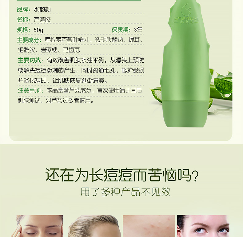水韵颜芦荟胶凝露祛痘印补水保湿晒后修复舒缓肌肤面霜正品