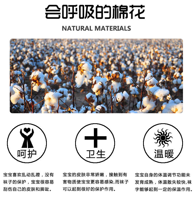 精选优质精梳棉,品质高弹力橡筋,宽松不勒腿,舒适亲肤,柔软吸湿,高度透气,持久耐穿,贴合儿童脚跟,不掉跟。一切都是为了宝宝,呵护宝宝娇嫩肌肤,给宝宝美好童年!
