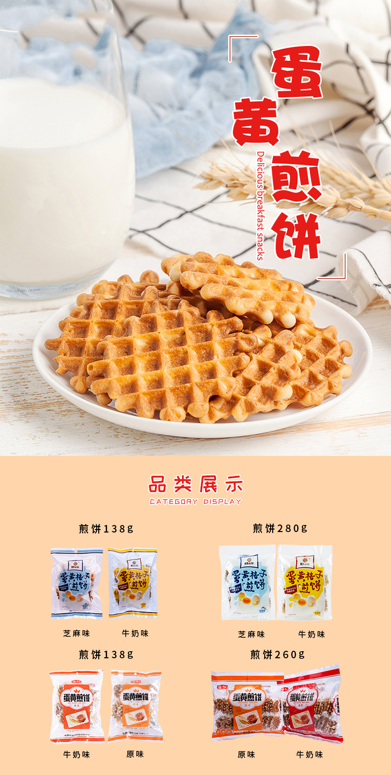 蒲议蛋黄煎饼260g*2袋早餐代餐饼干整箱鸡蛋饼干休闲食品零食小吃