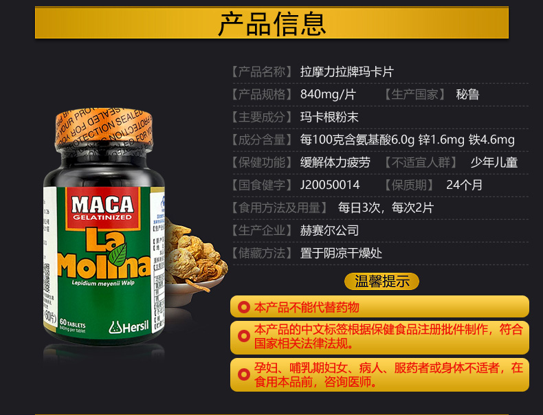 拉摩力拉玛卡片60片黑玛咖精片秘鲁进口成人男性保健品缓解疲劳