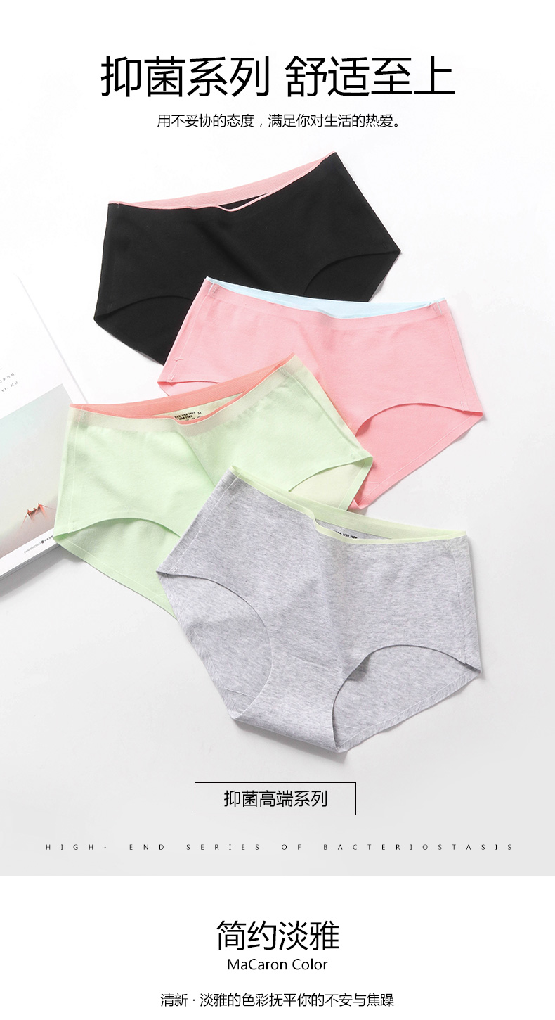 4条装内裤女纯棉抗菌中腰女士三角裤透气少女日系无痕裤头