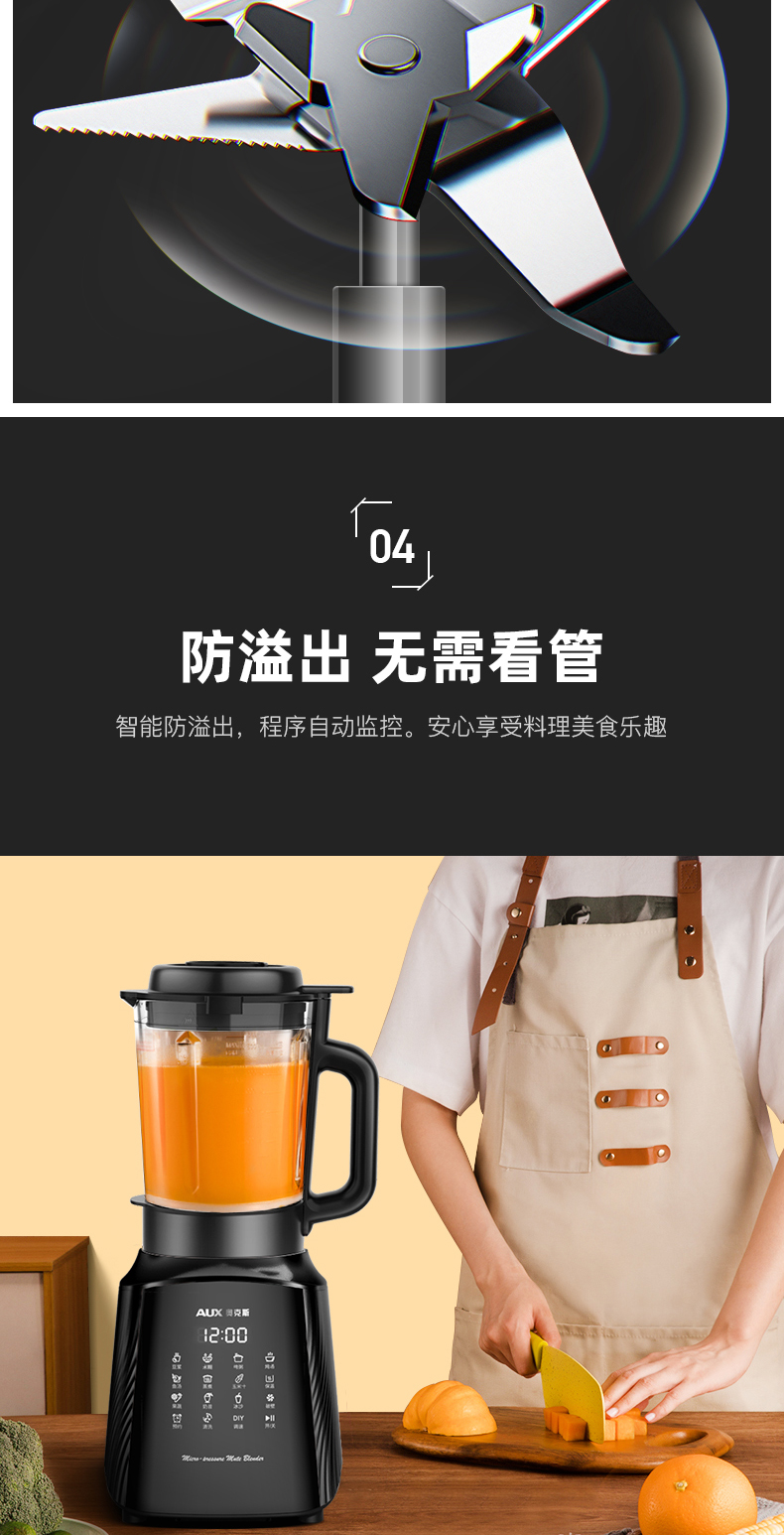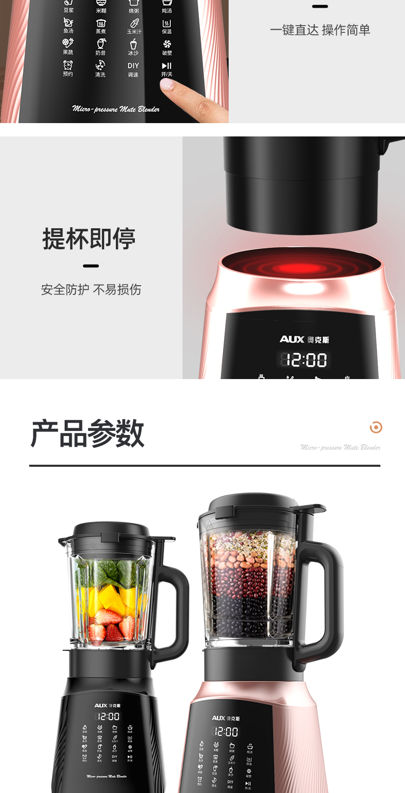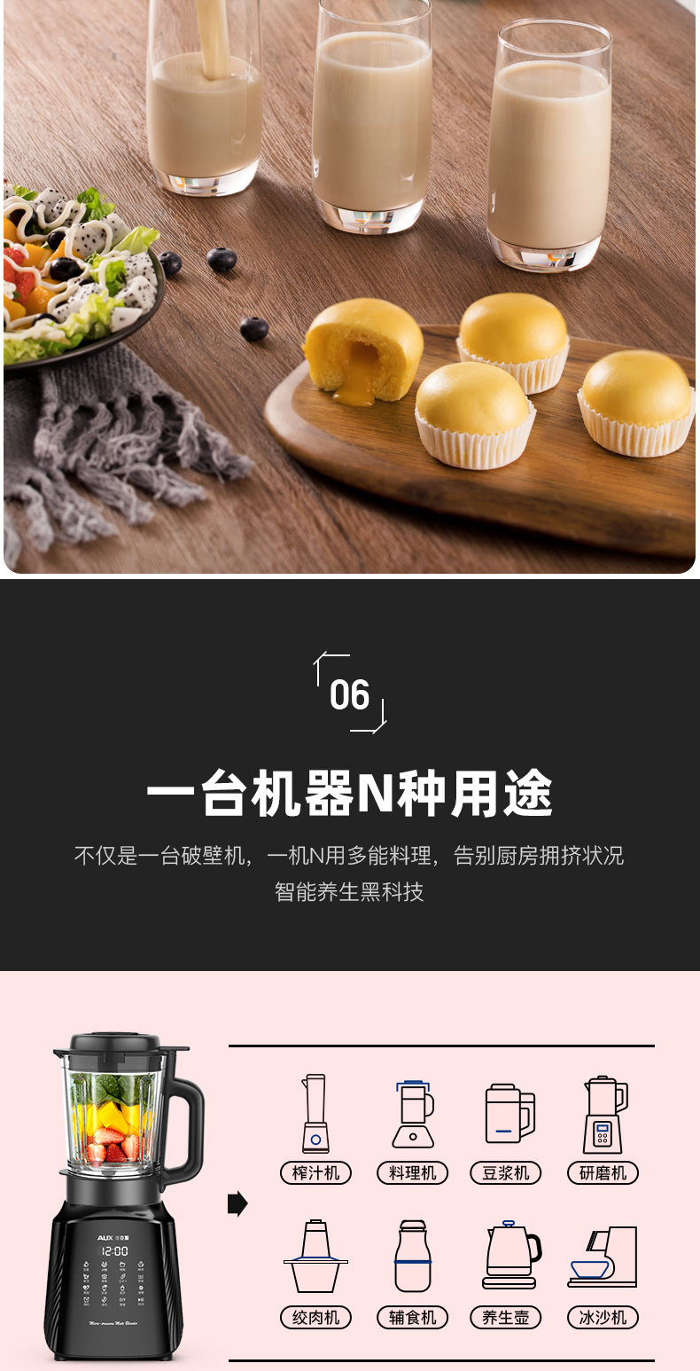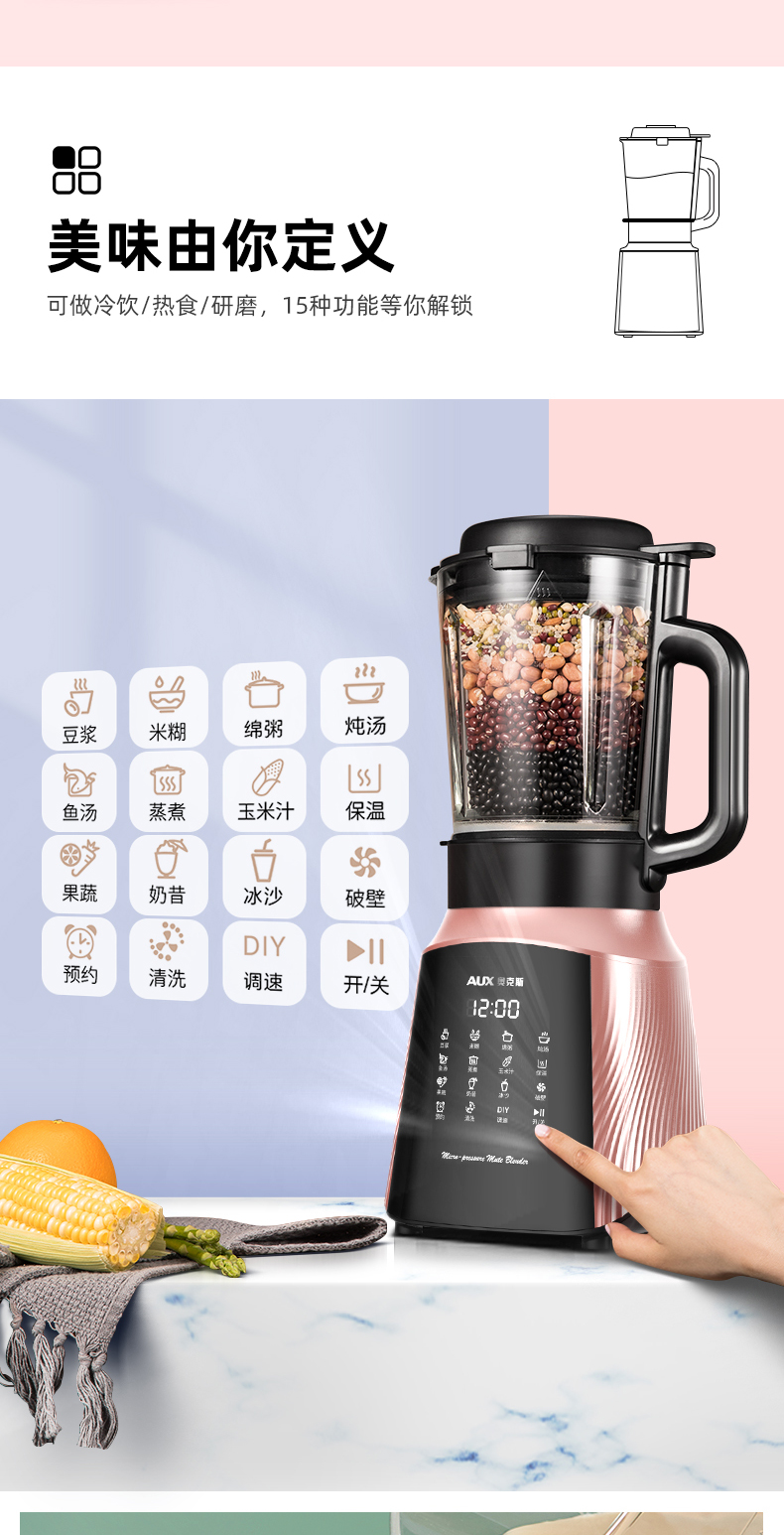 奥克斯新款静音破壁机家用小型加热全自动多功能豆浆机榨汁料理机