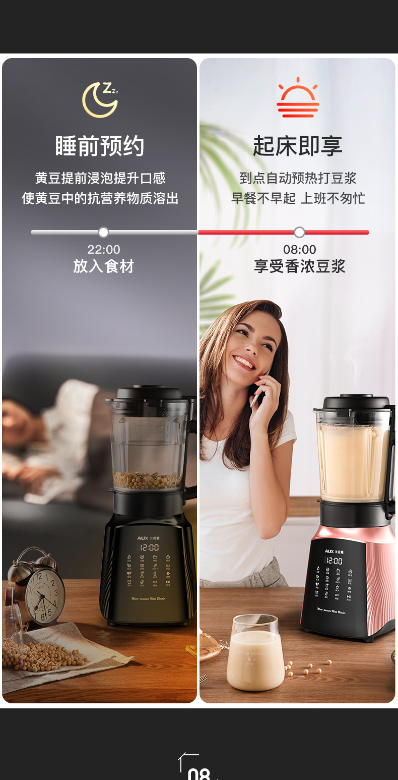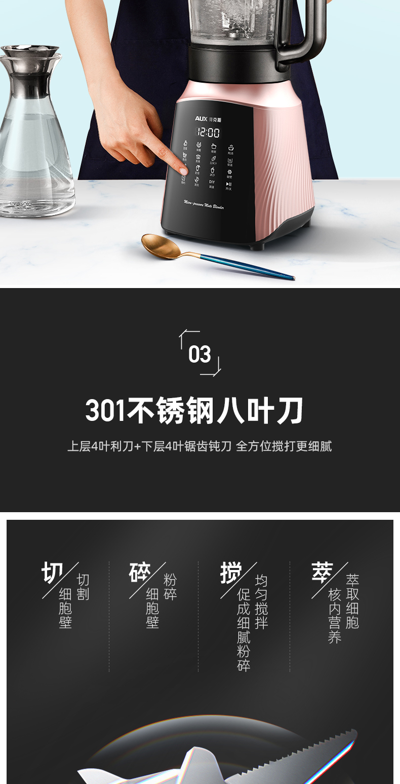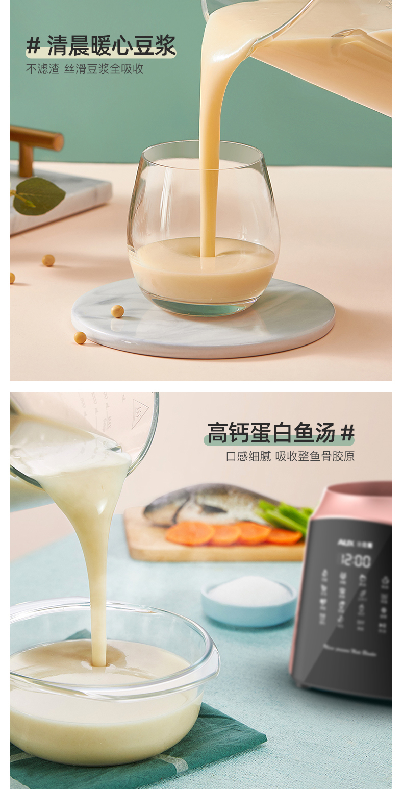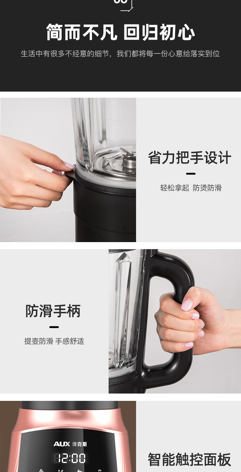 奥克斯新款静音破壁机家用小型加热全自动多功能豆浆机榨汁料理机