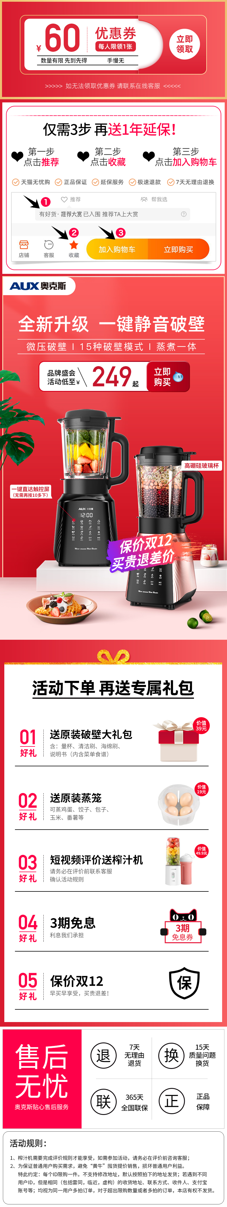 【送蒸笼!一年免费换新~】超高级配置!这种配置超市随随便便都要上千了!而且还可用10年!13种功能,蒸煮一起送蒸笼,超静音食代,包办各种美味!智能预约,破壁不糊底,释放食物营养,胃部吸收更easy!