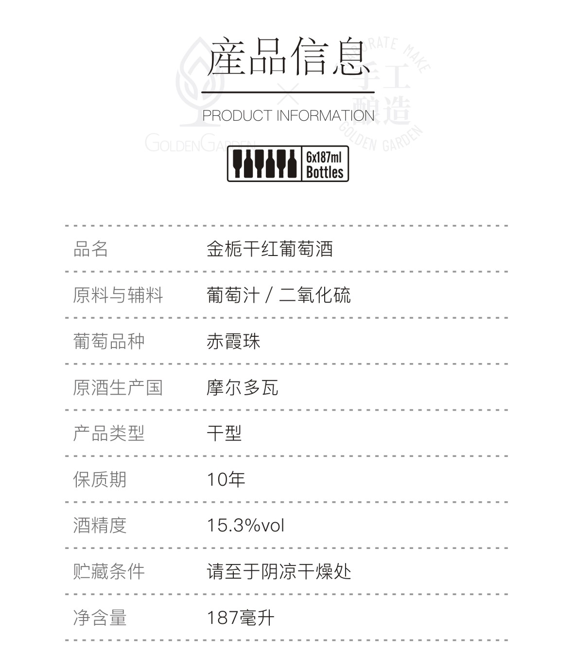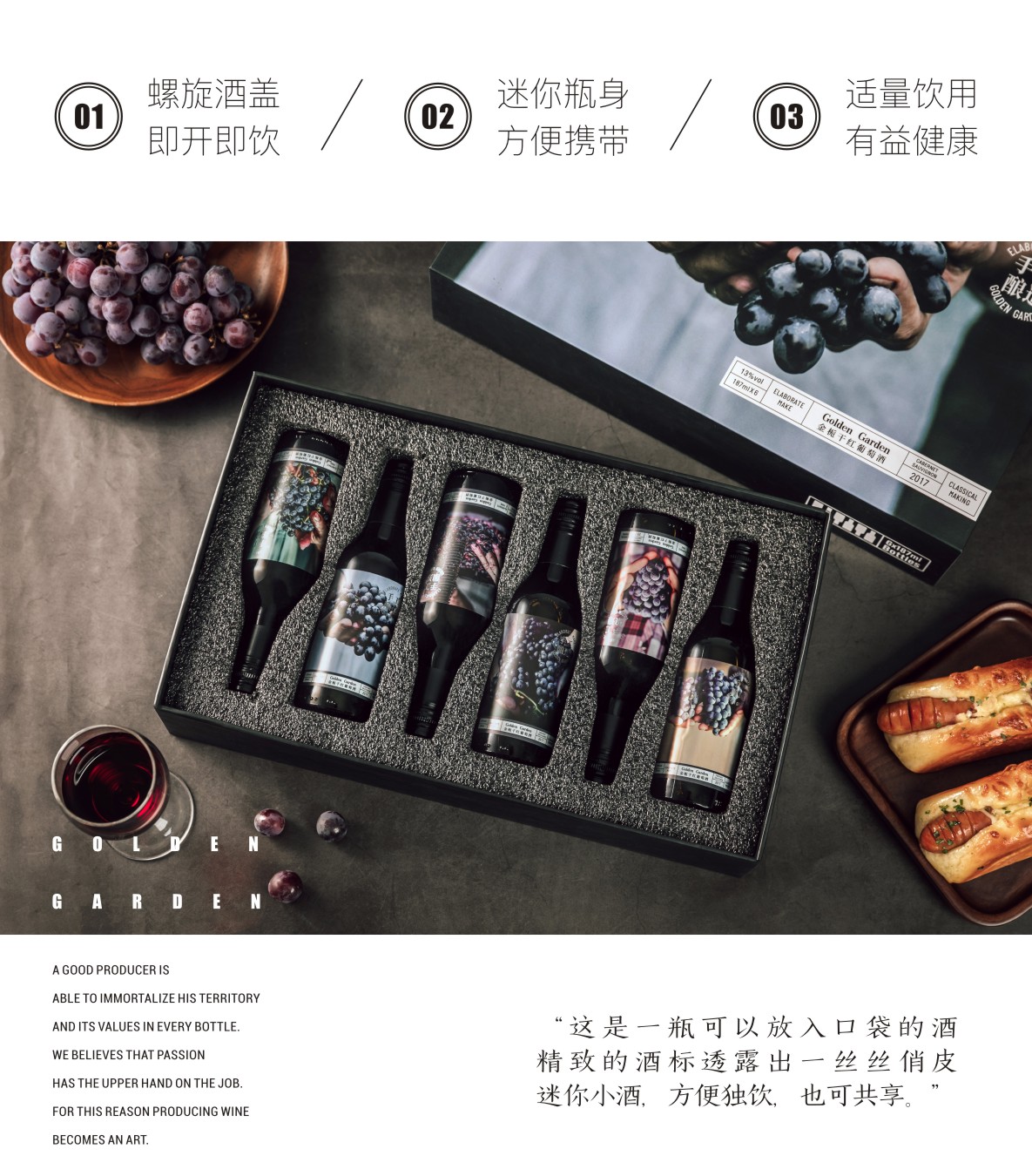 金栀干红葡萄酒智利进口迷你小瓶红酒187ml小支女士睡前网红整箱6