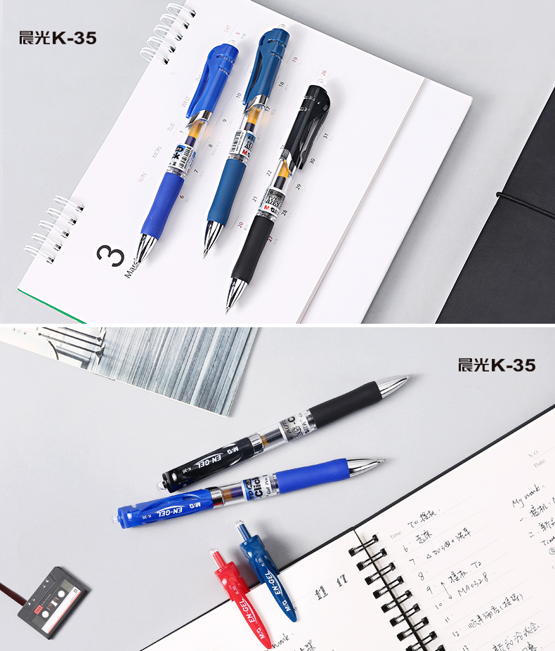 晨光文具中性笔0.5可按动签字笔会议笔黑红蓝水笔学生学习办公用笔 12支K35