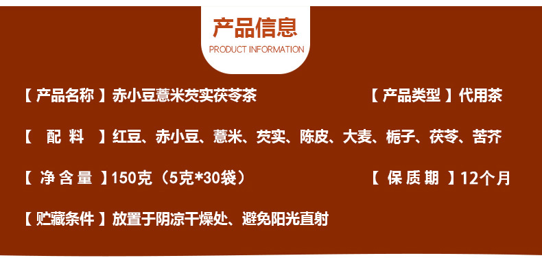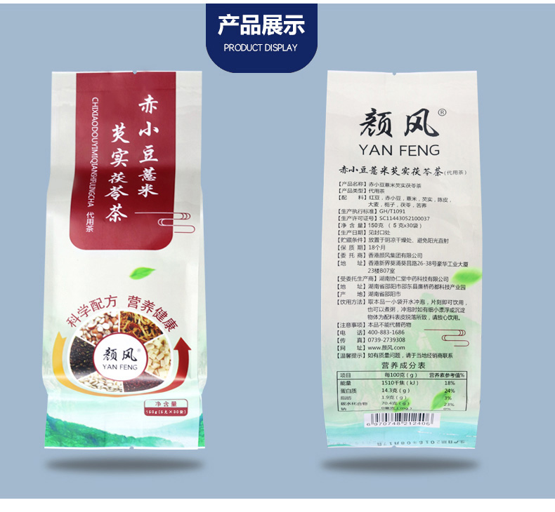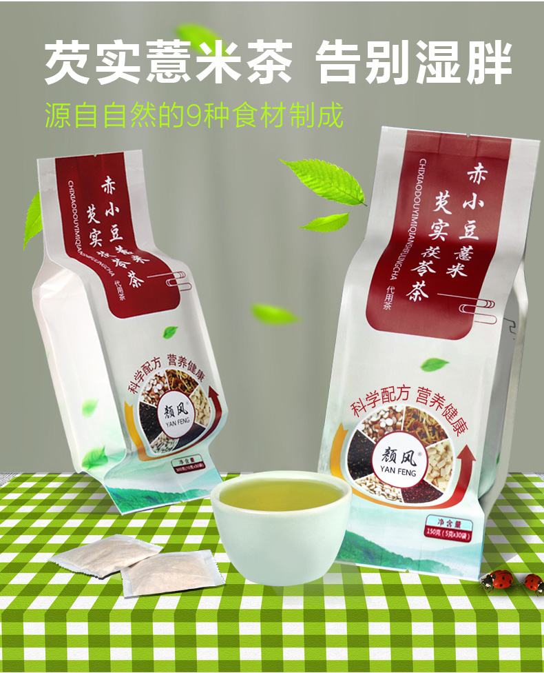 颜风炒薏米赤小豆芡实茯苓茶抖音款 红豆小薏仁米茶包150克包邮