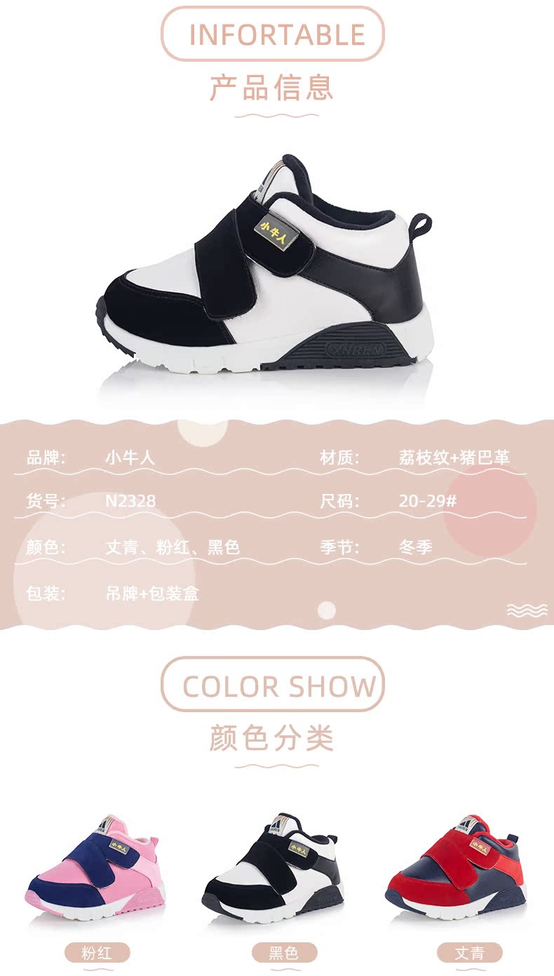小牛人加绒加厚棉鞋软底宝宝棉鞋学步保暖鞋儿童男女童二棉鞋冬