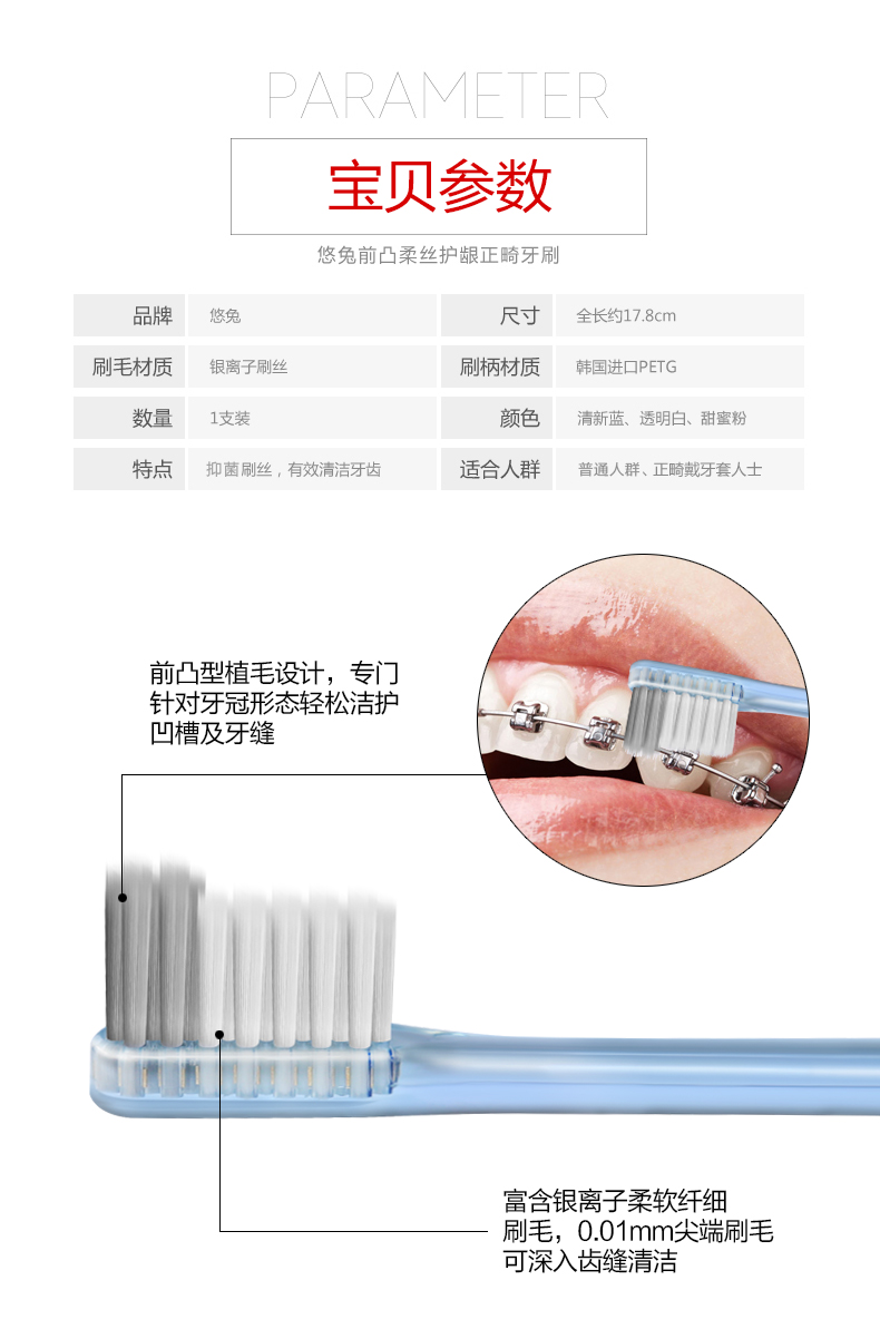 悠兔凸型正畸牙刷儿童成人牙矫正齿牙套专用牙间刷软毛小头牙缝刷