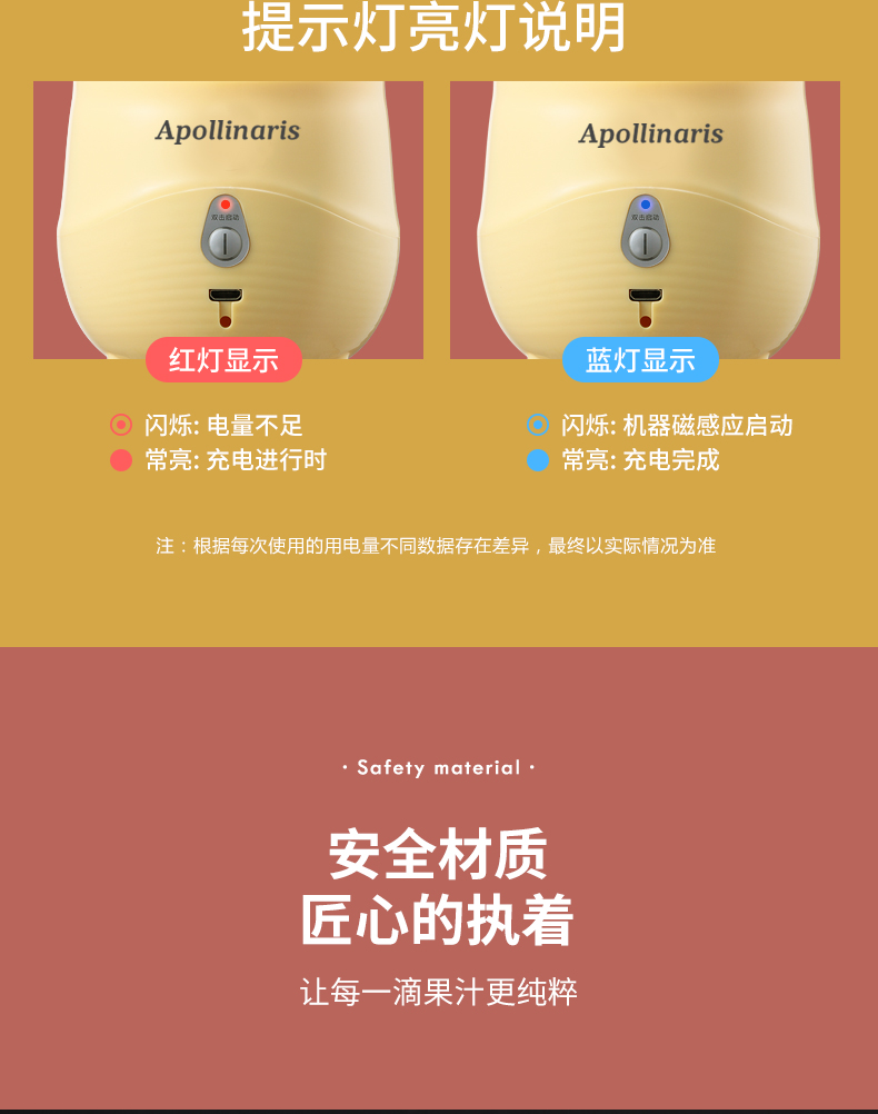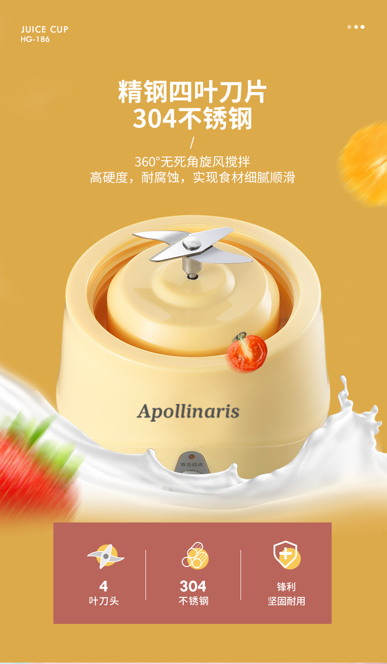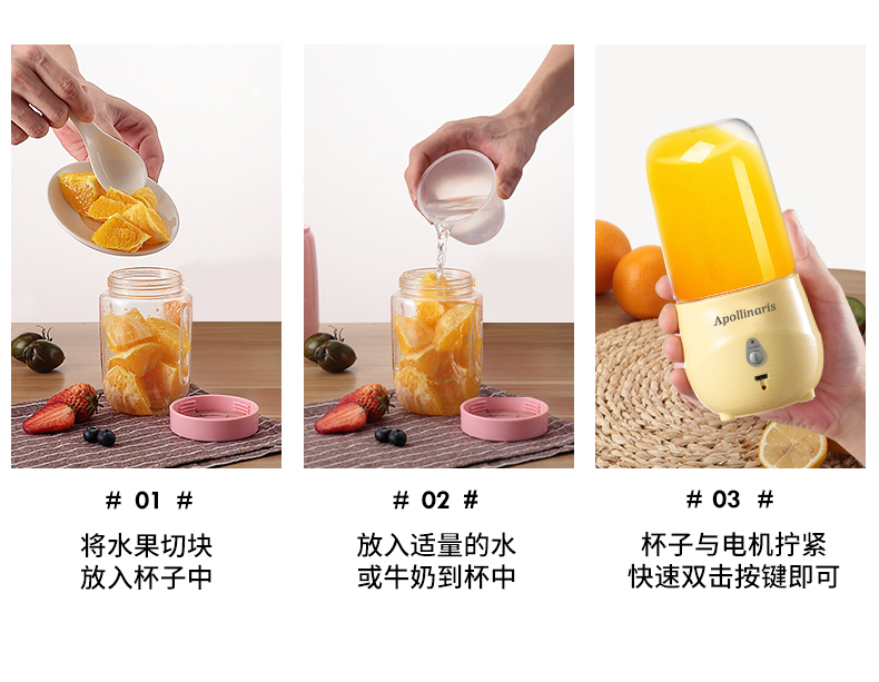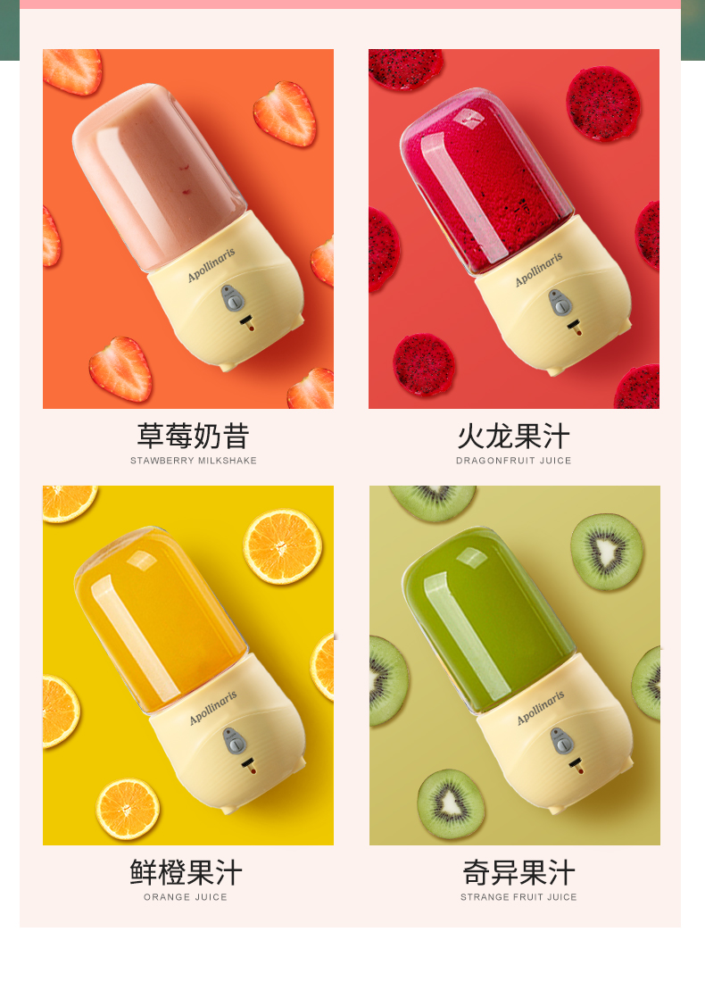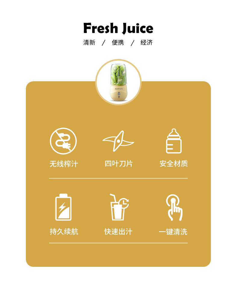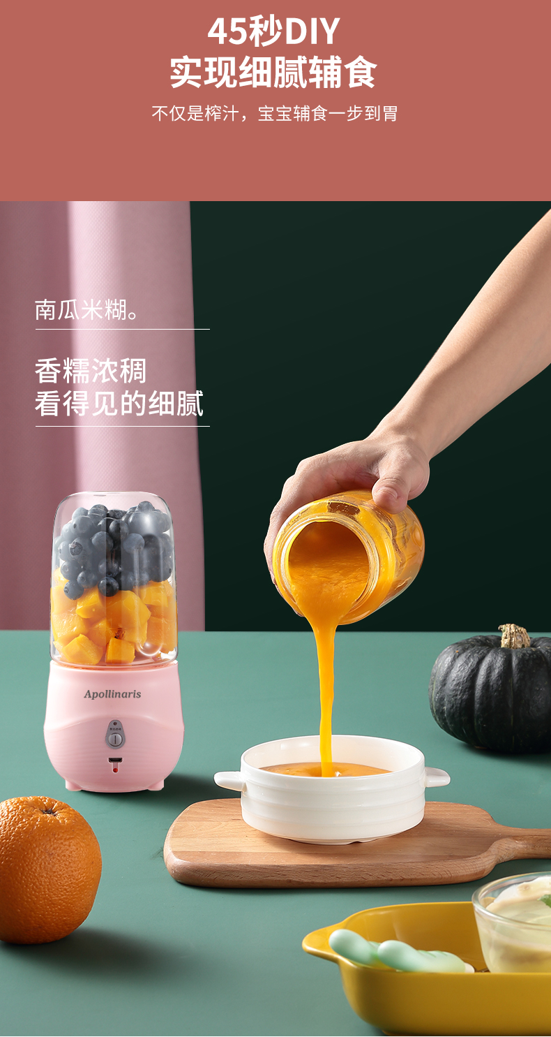 apollinaris便携榨汁机家用小型充电迷你学生榨汁杯电动炸果汁机