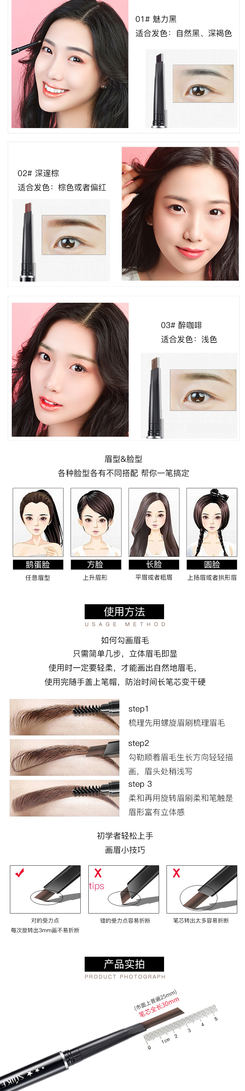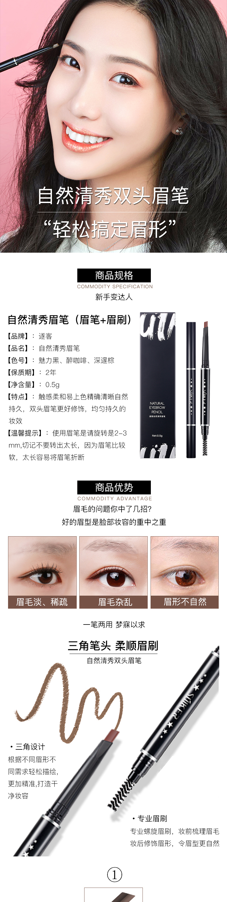 【遂客】双头旋转,轻松上色,防水防汗,立体塑形,持妆一整天,手残党也能画出精细的好眉形!轻松打造自然眼眉装,更懂你的需求~~