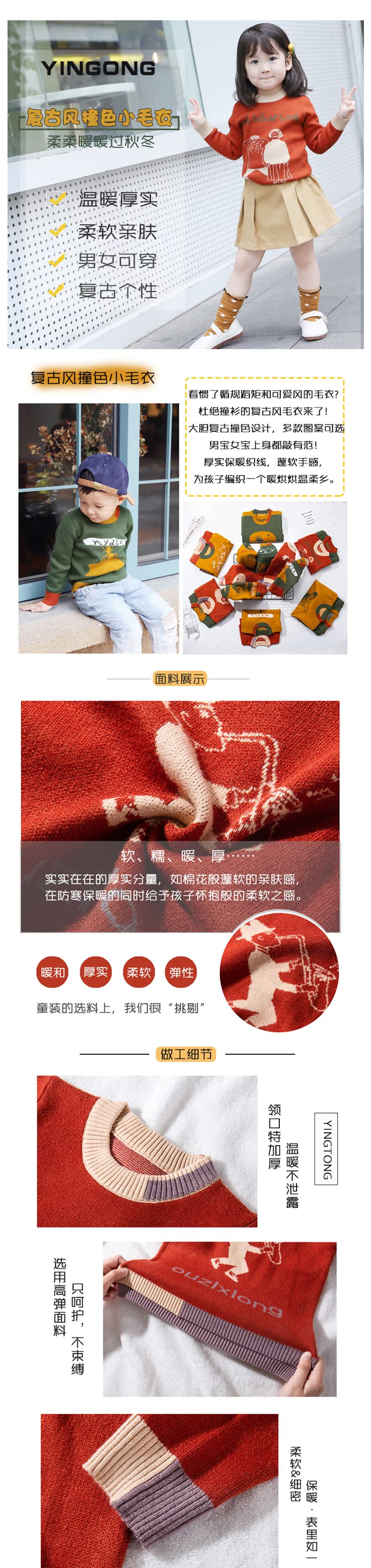 英彤家女童毛衣套头 婴幼儿2019新款韩版秋冬洋气撞色长袖针织衫