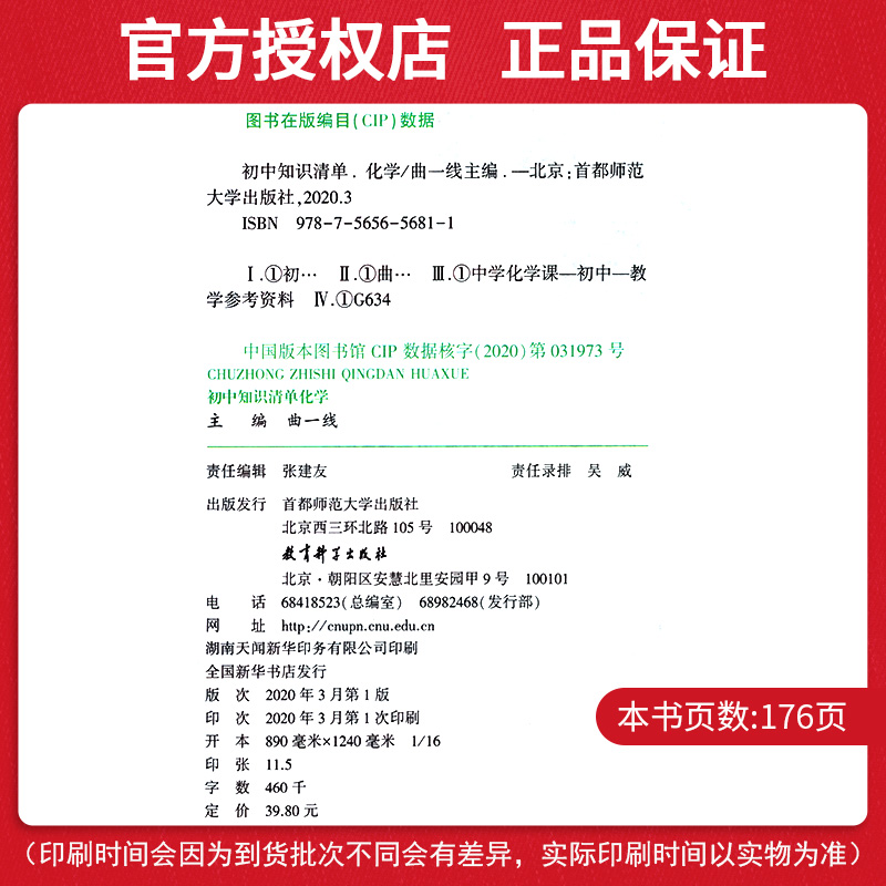 初中化学知识清单2020版全国版 五三曲一线初中化学辅导资料初三总复习教辅中学九年级上下册题库知识大全化学 基础知识手册