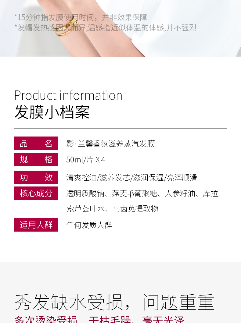 小红书力荐,网红发膜,蕴含人参仔精华,深层滋养,添加透明质酸钠,弱酸性平衡护理,更贴近头皮健康环境,有效改善烫染受损、干枯毛躁发质,让秀发丝般柔顺,自然亮泽~