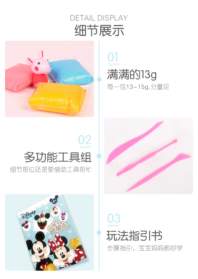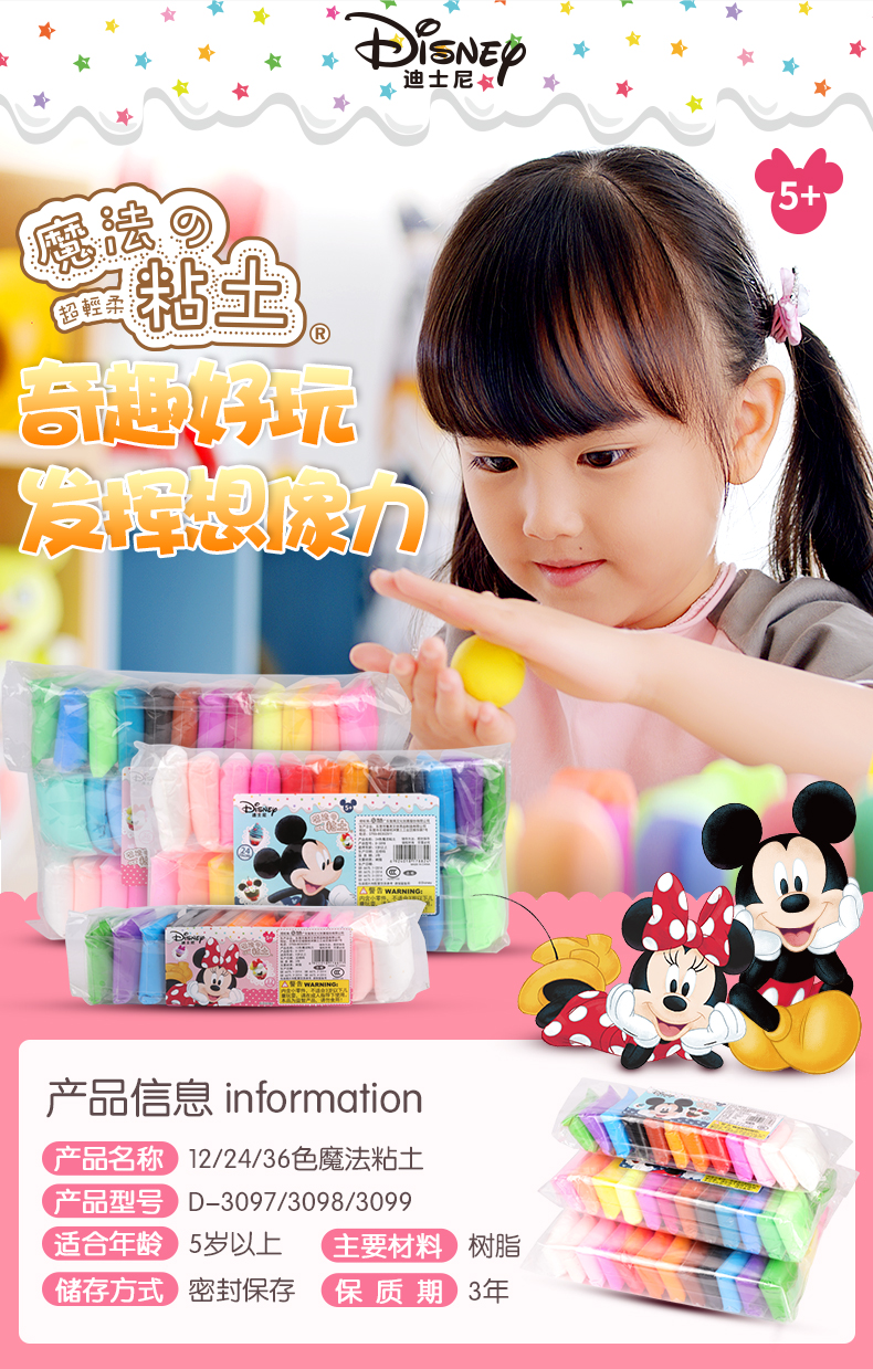 迪士尼专为儿童设计,环保无毒又好玩,质地轻柔,拉伸力强,颜色丰富,能锻炼孩子的动手能力,协调孩子思维能力,激发想象力!