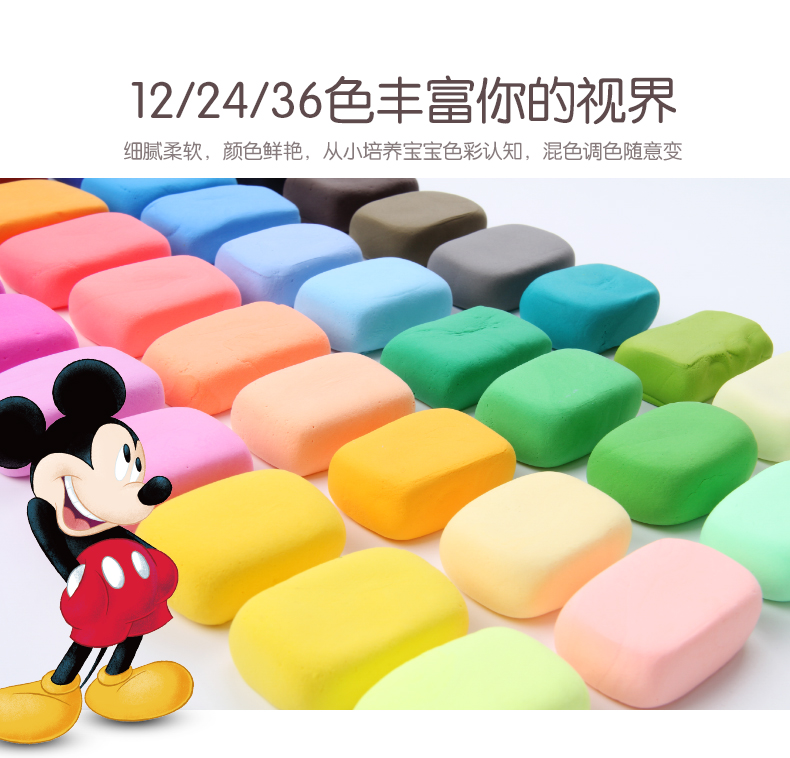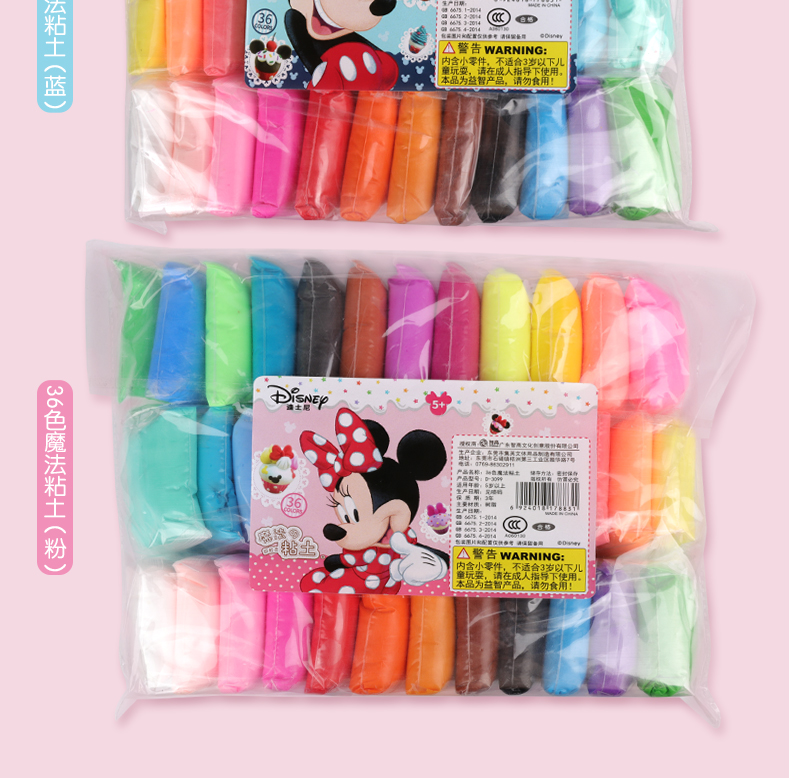 迪士尼新品儿童手工超轻粘土套装玩具diy软陶3d彩泥 24色36橡皮泥