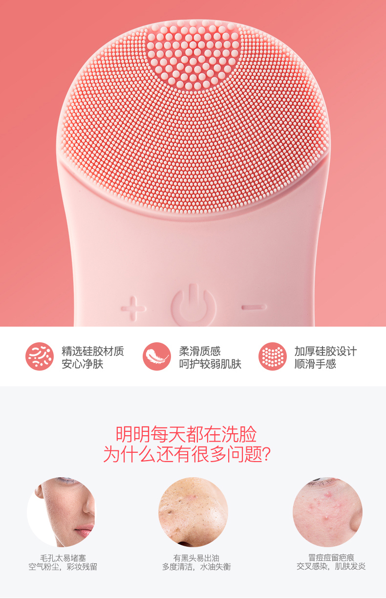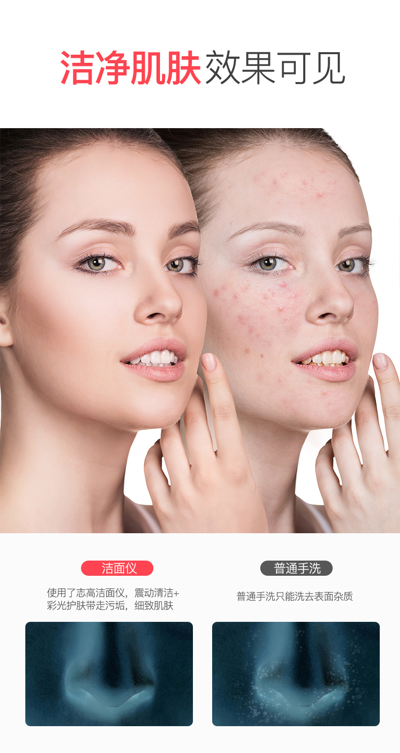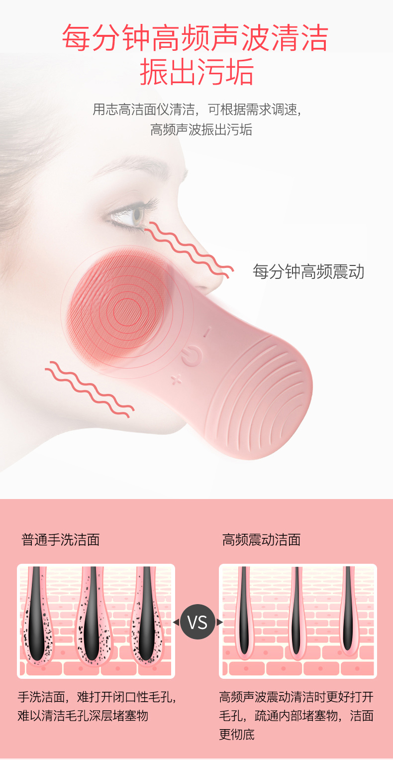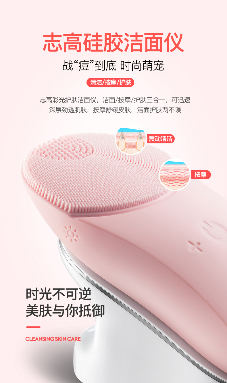 志高硅胶洁面仪电动洗脸器,洁面按摩护肤三合一,可迅速深层劲透肌肤,按摩舒缓皮肤,洁面护肤两不误,时光不可逆,美肤与你抵御,安全防水,健康易清洗!