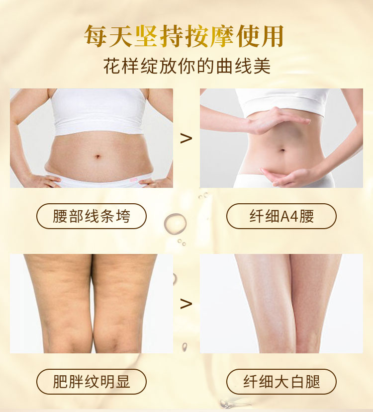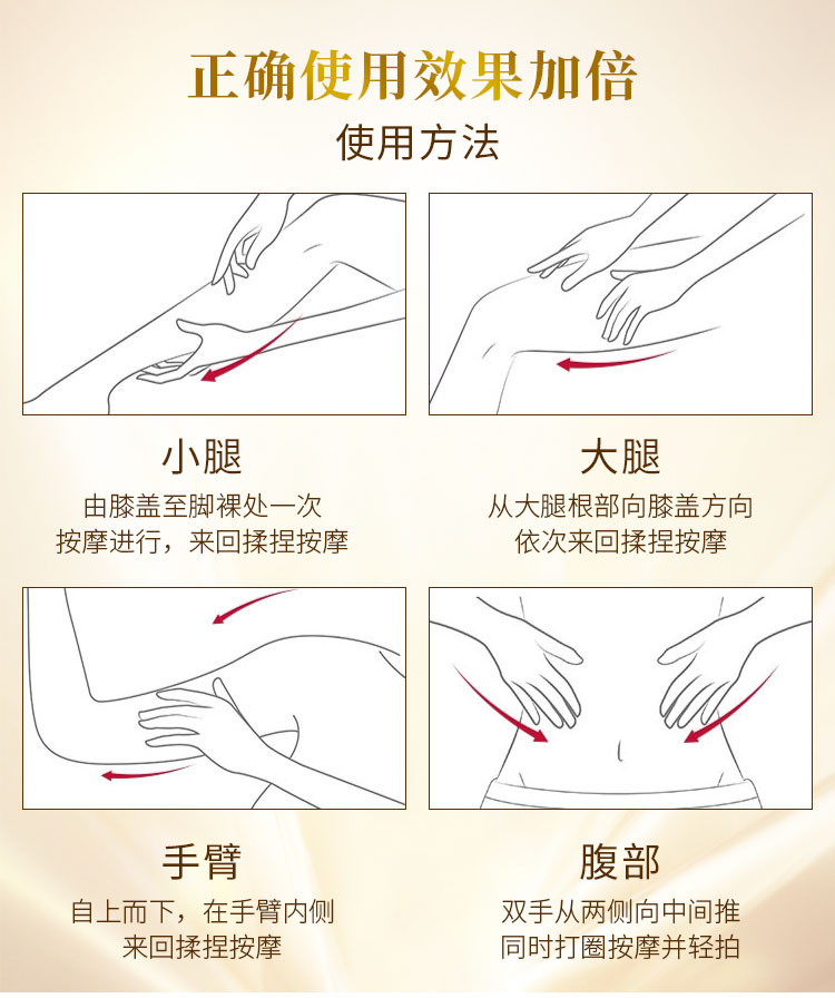 蕴含多种植物精华,塑身纤体,祛湿寒,行血气去酸痛,提拉紧致,清出脂肪,按摩刮痧泡脚香薰多用途,滋润肌肤,缓解修护肤质,吸收快,不油腻,无刺激,全身可用,轻松四步,纤体瘦身【赠运费险】