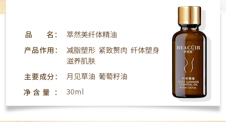 萃然美纤体精油塑全身按摩精油肩颈背面部美容院刮痧推油正品30ml