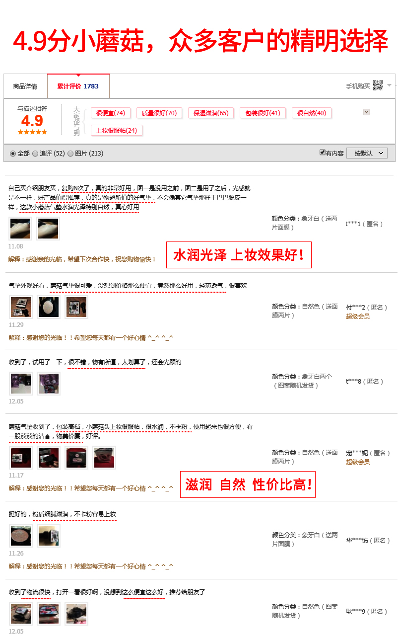 缔芙曼小蘑菇头气垫 bb霜正品网红同款cc霜保湿不卡粉隔离遮瑕
