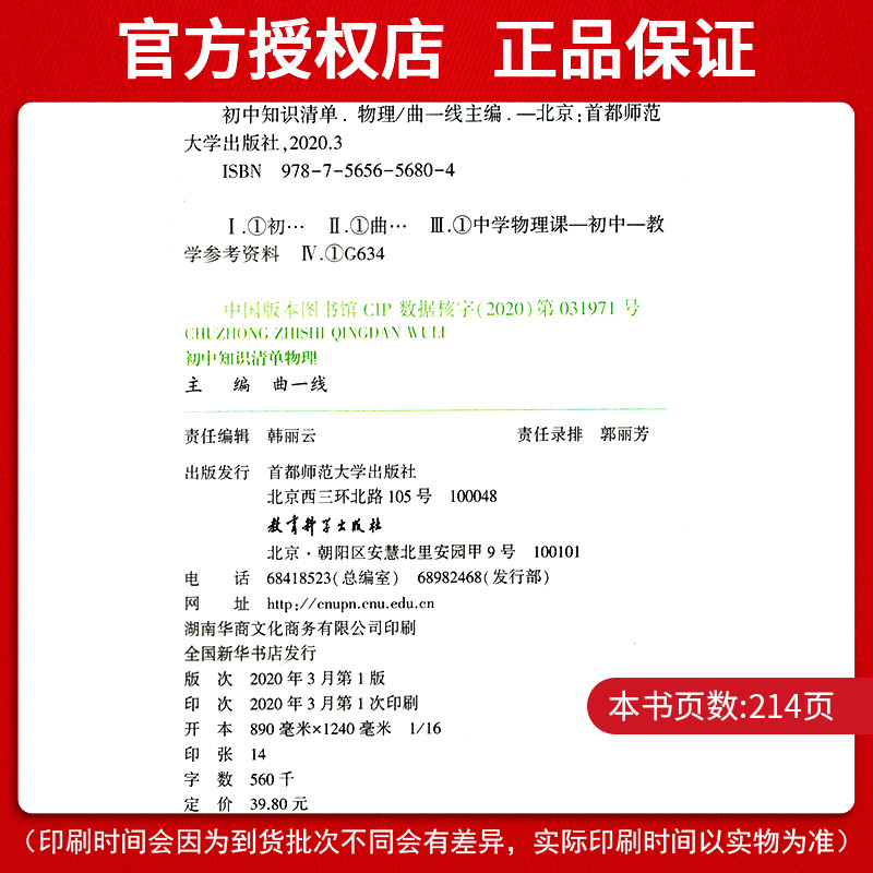 初中物理知识清单2020版全国版 五三曲一线初中物理辅导资料初一二三总复习教辅中学八九年级上下册题库知识大全物理 基础知识手册