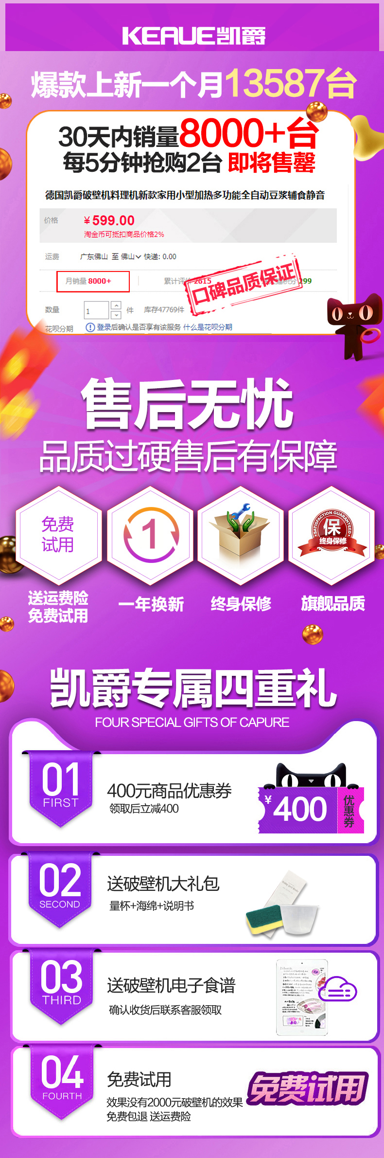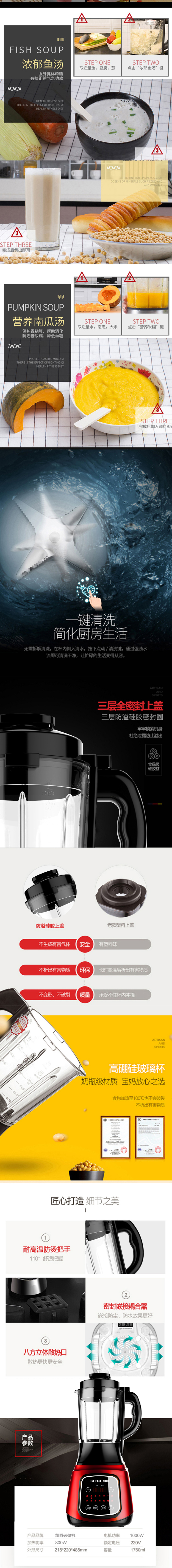 8叶钢刀超高转速,碎骨毫无压力,细腻无渣,营养鲜存!升级可蒸煮,自动清洗,24小时预约,14大功能菜单,一机顶替厨房多种电器!