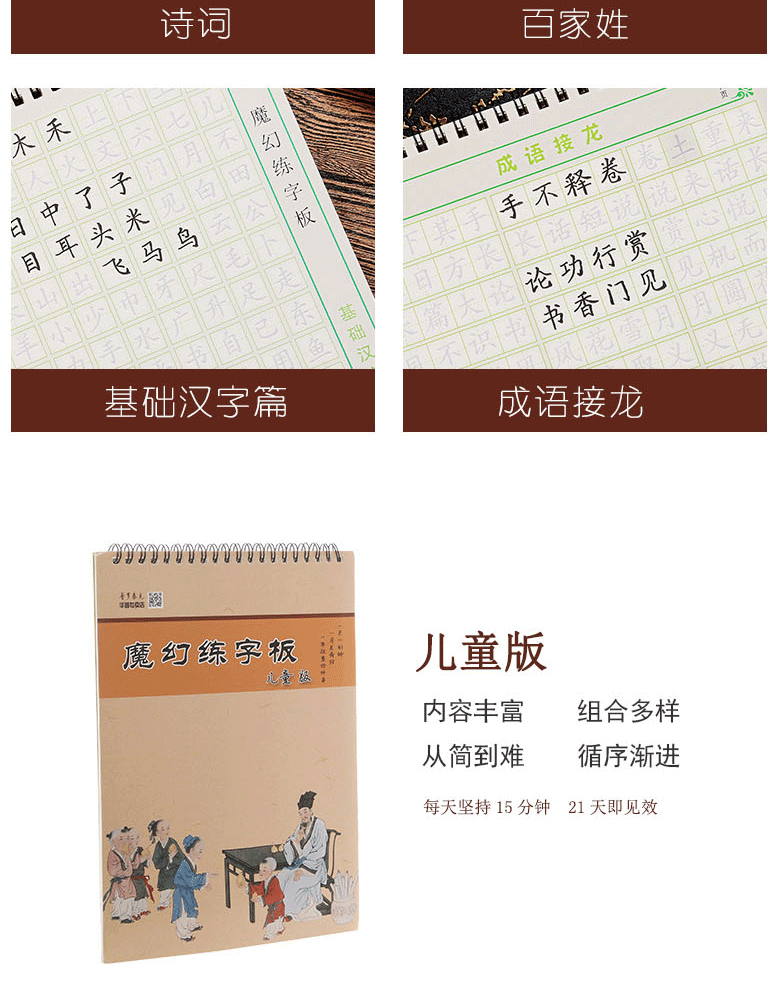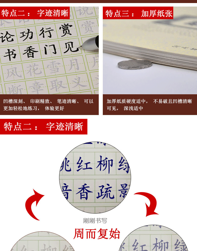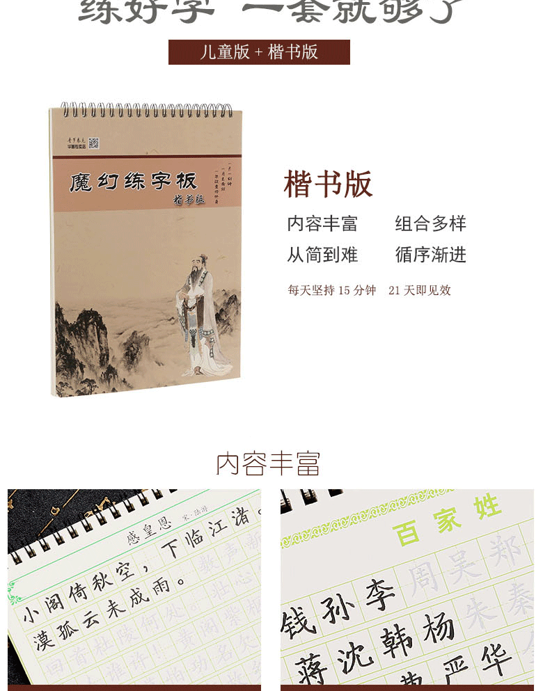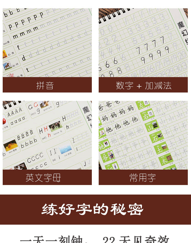 儿童学生专用,让孩子写一手好字!汉字英语数学多类,老师推荐同款,加深凹槽,效果显著,使用褪色笔芯,重复使用,聪明妈妈都选择它!