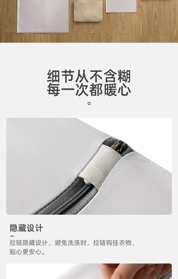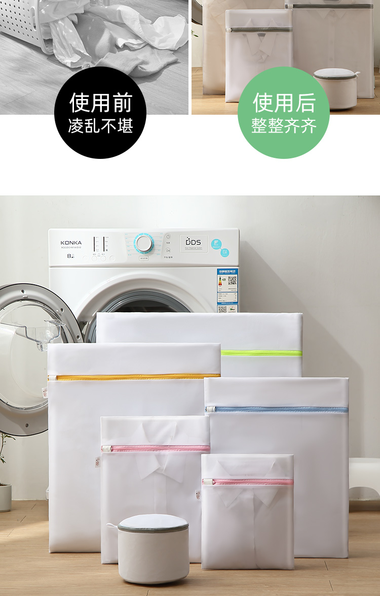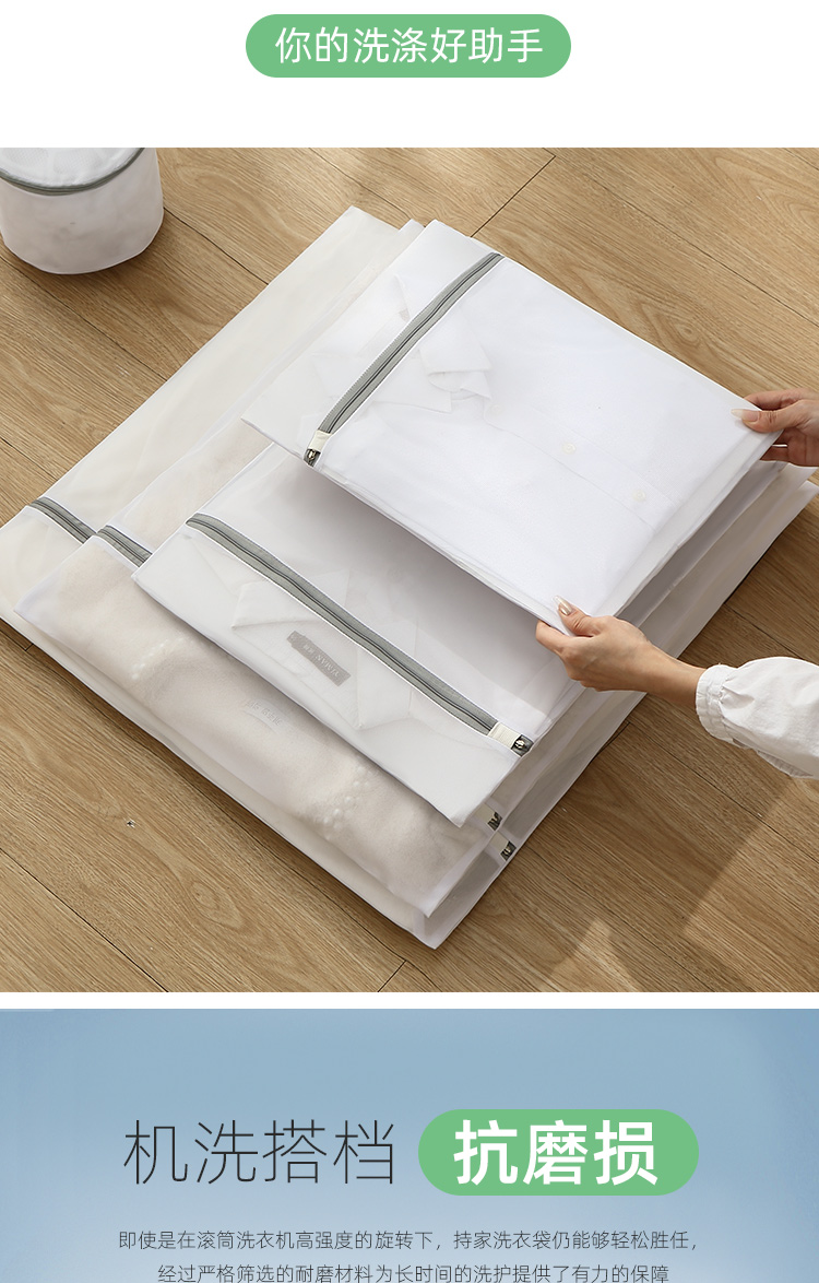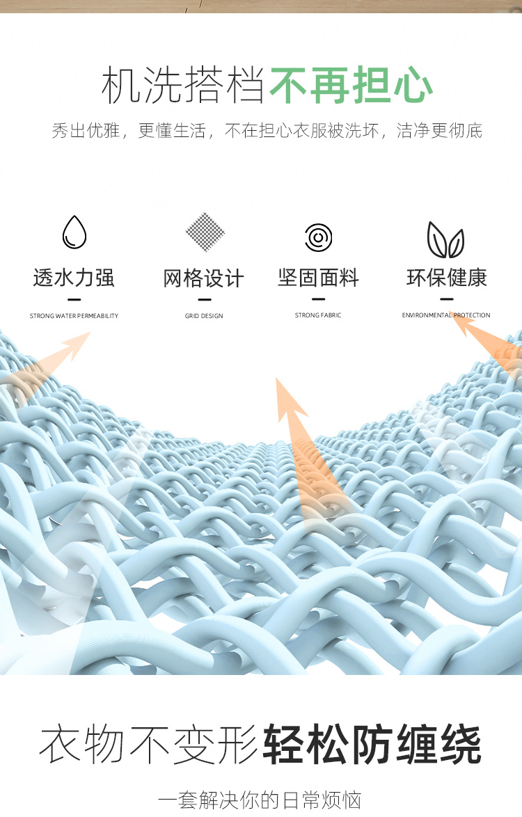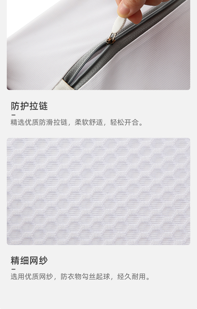 分类洗涤,防缠打结,保护衣物,搭配科学合理,升级拉链,不伤衣物,精细包边,对衣物双重呵护,真实洗衣的好帮手,呵护双手,文胸内衣也能机洗,你值得拥有~