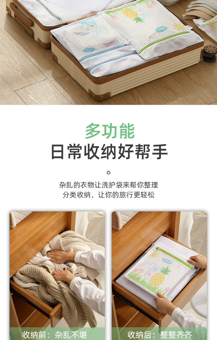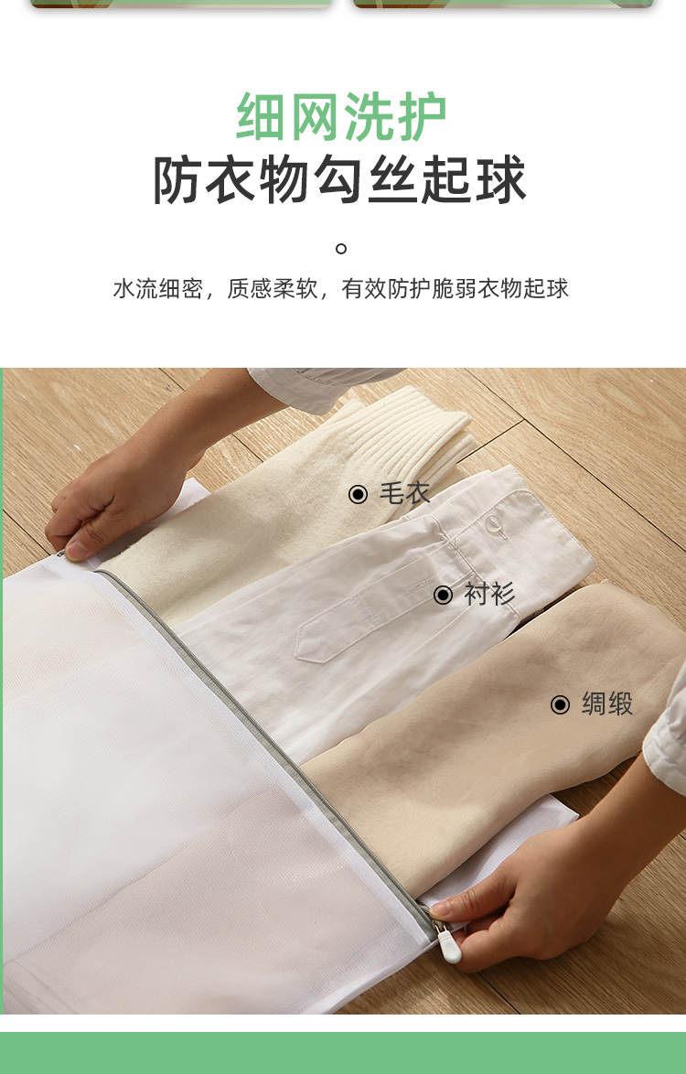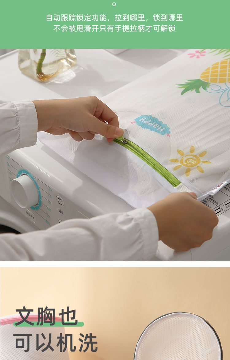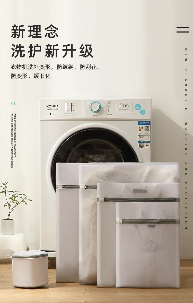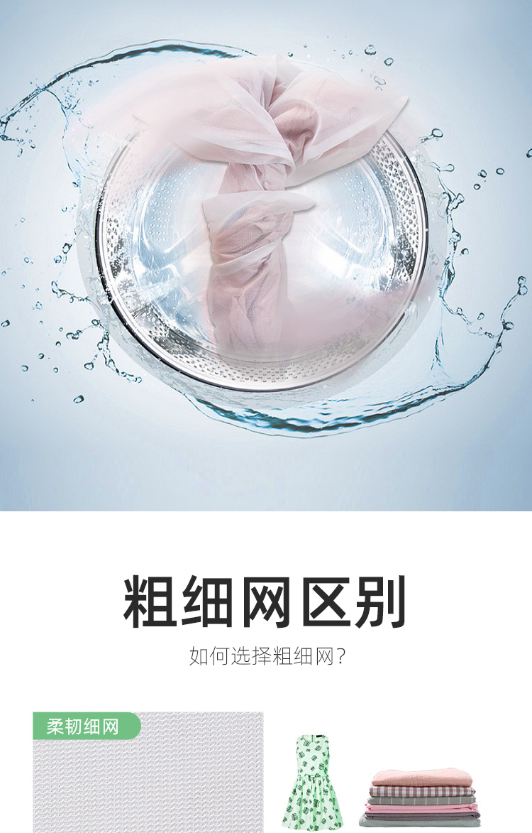 分类洗涤,防缠打结,保护衣物,搭配科学合理,升级拉链,不伤衣物,精细包边,对衣物双重呵护,真实洗衣的好帮手,呵护双手,文胸内衣也能机洗,你值得拥有~