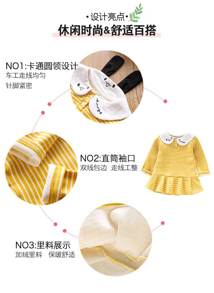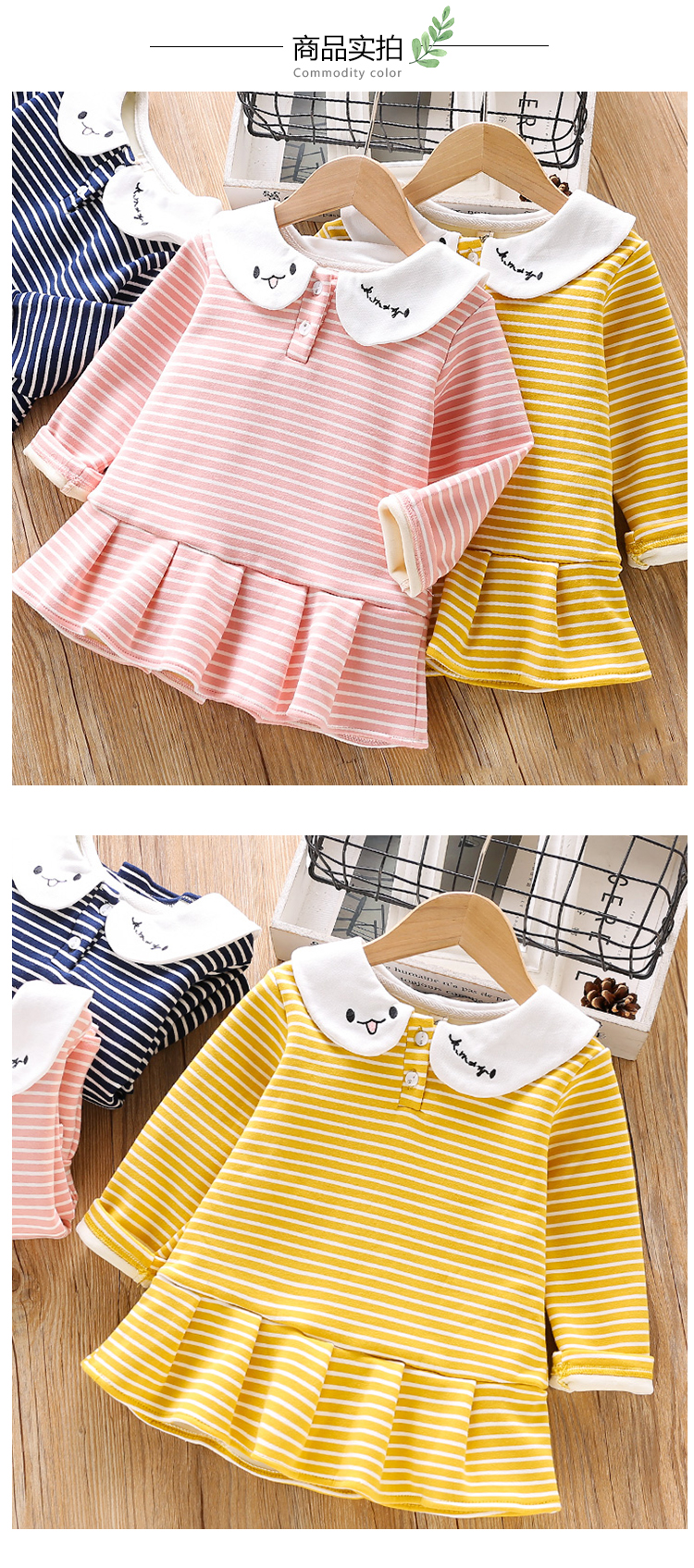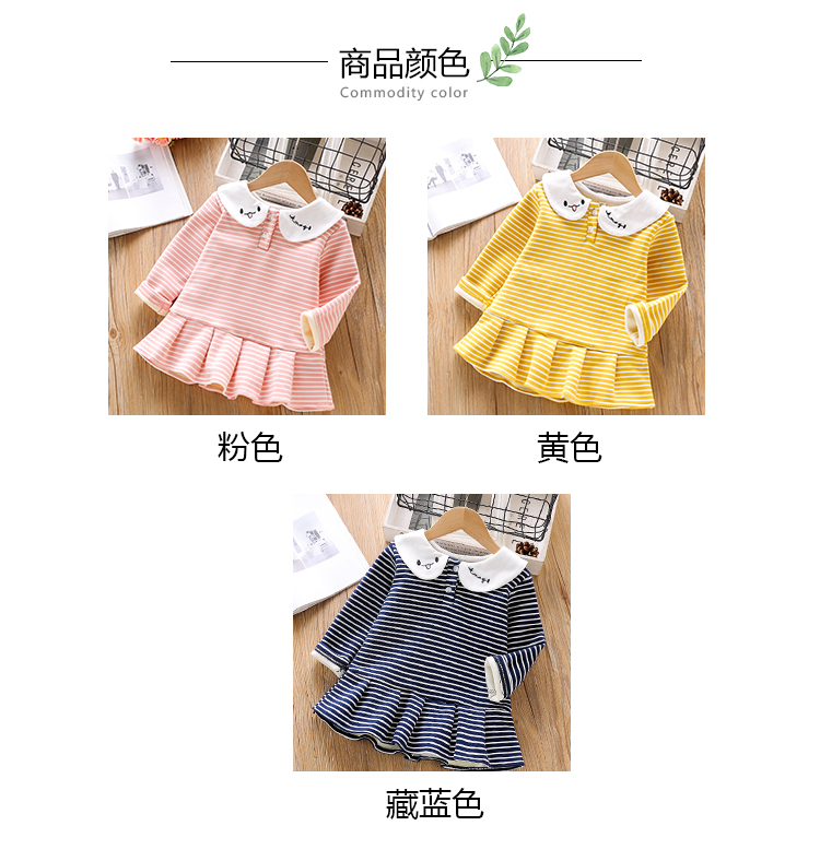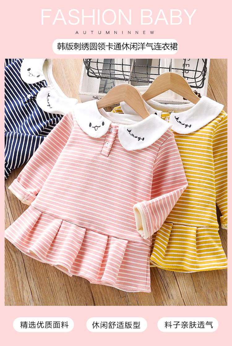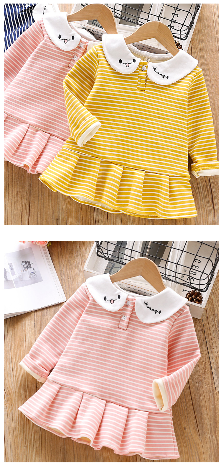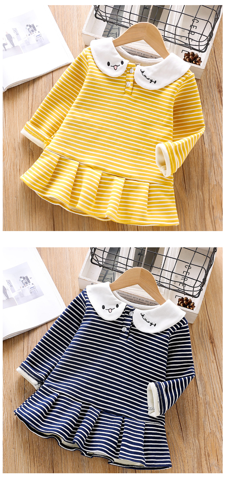 女童冬装卫衣裙衫2019新款条纹学院风加绒上衣女宝宝洋气套头裙衫