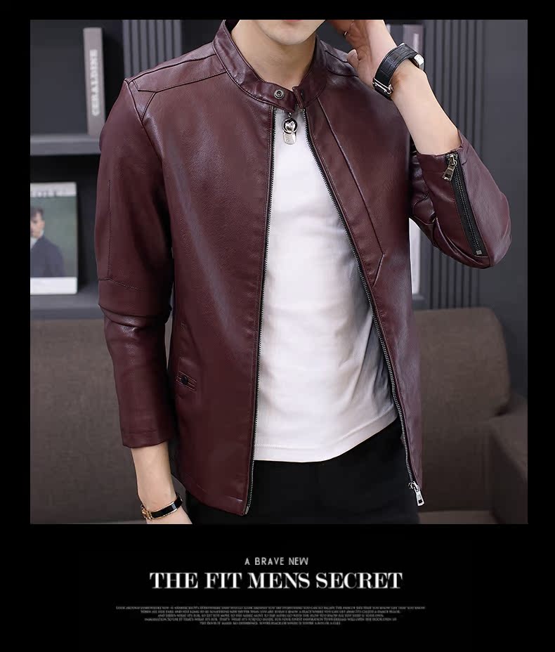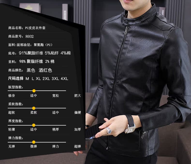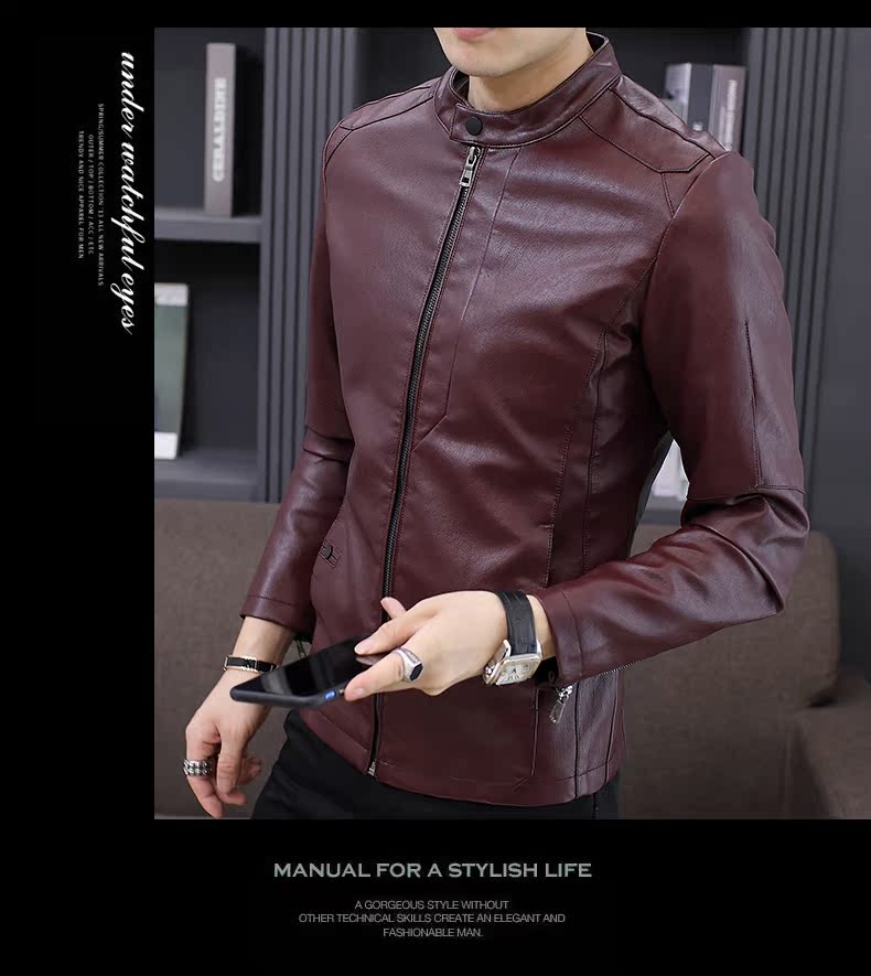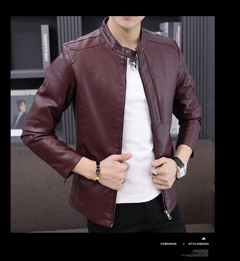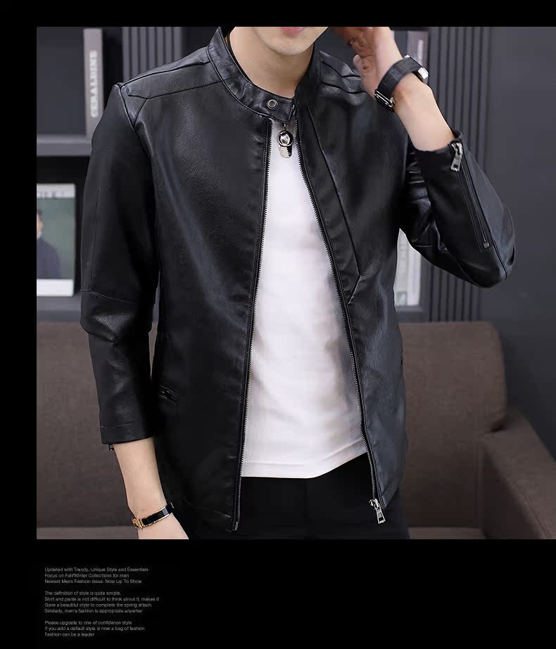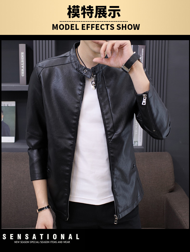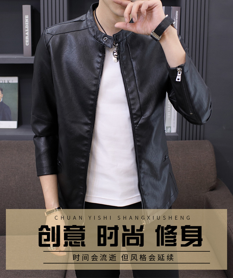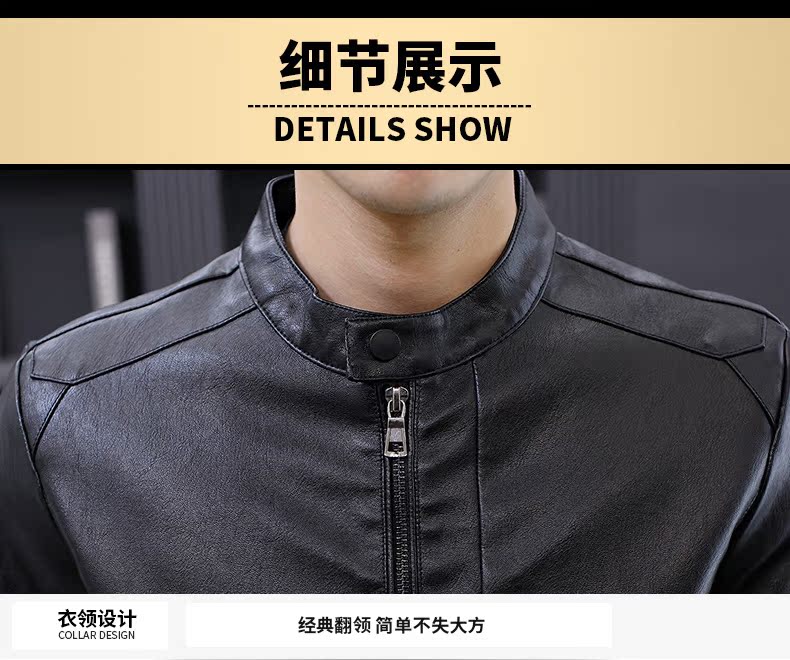 2019新款秋冬季男士韩版潮流休闲立领PU皮衣夹克加绒外套青年