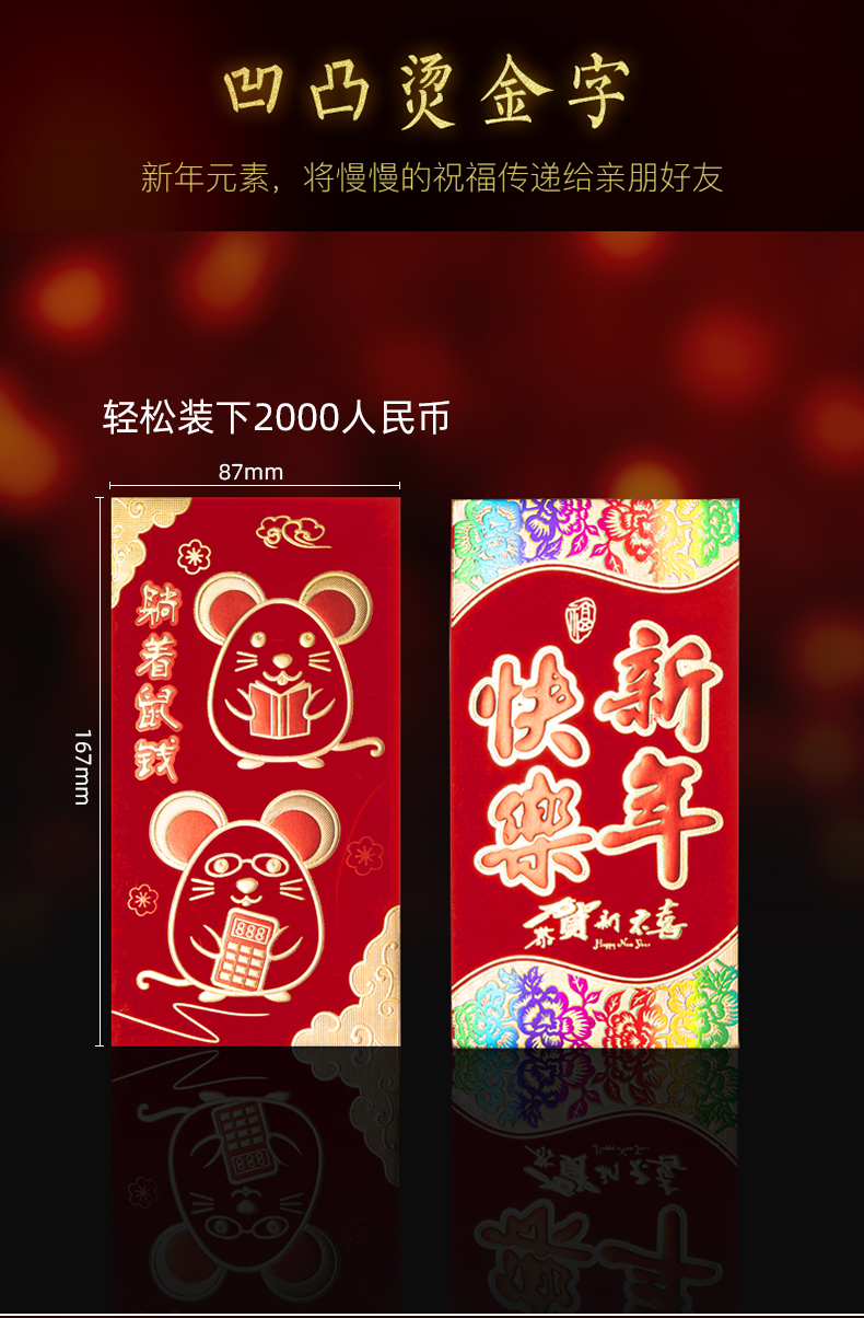 【新年创意红包首发】超值30个装,时尚新颖的图案设计,烫金材质,这个新年彰显您的独特魅力!多少种款式可选!关键还这么便宜!赶紧抢!