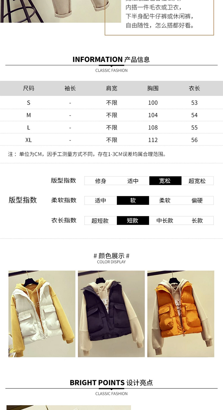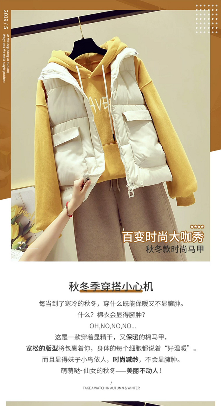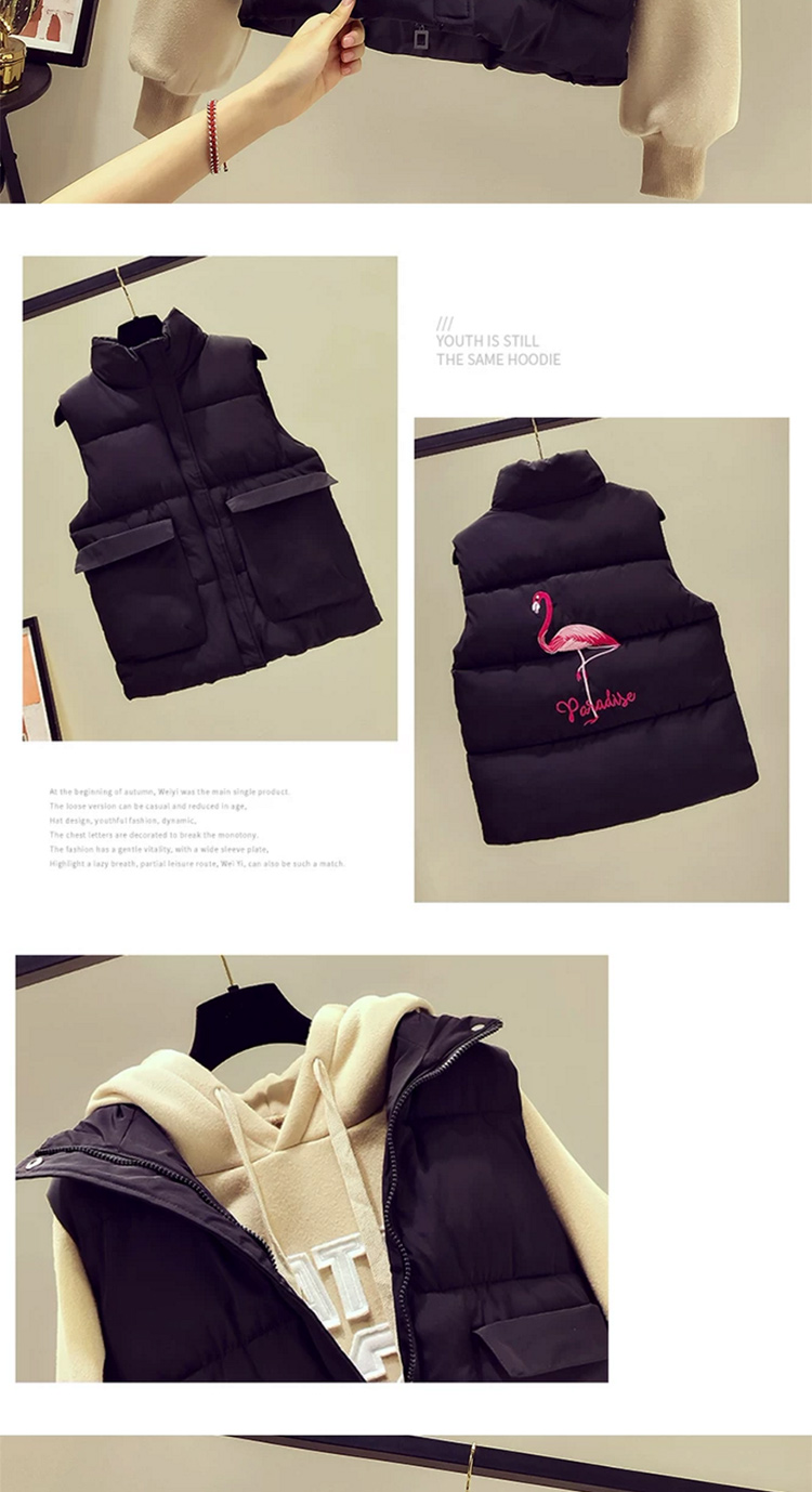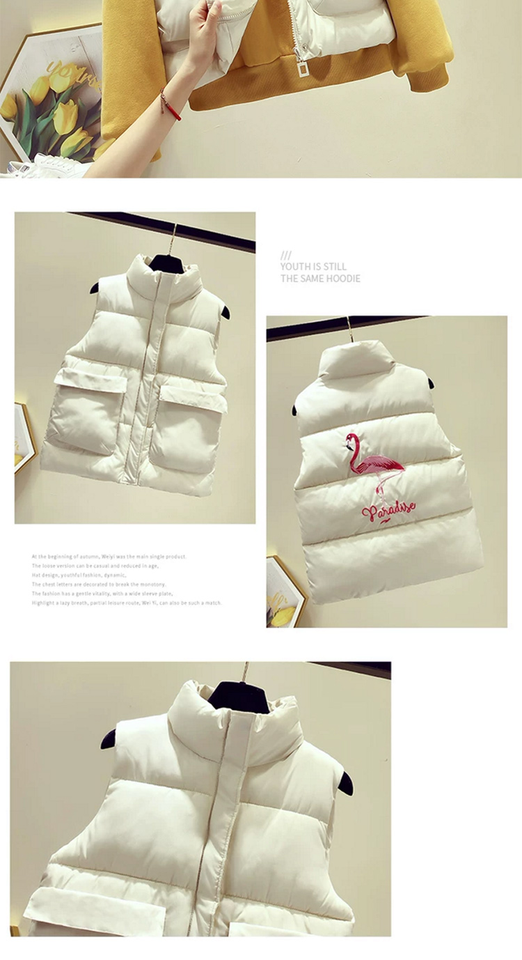羽绒棉马甲女2019秋冬新款韩版宽松学生短款刺绣立领马夹背心外套
