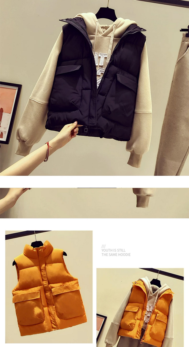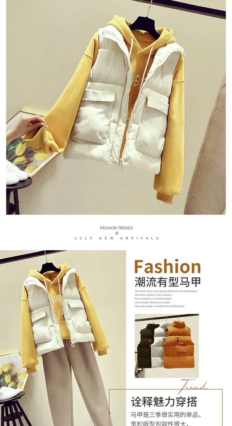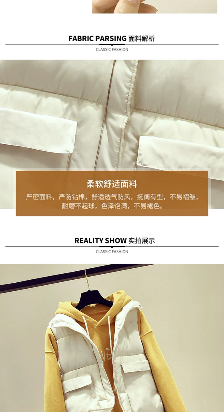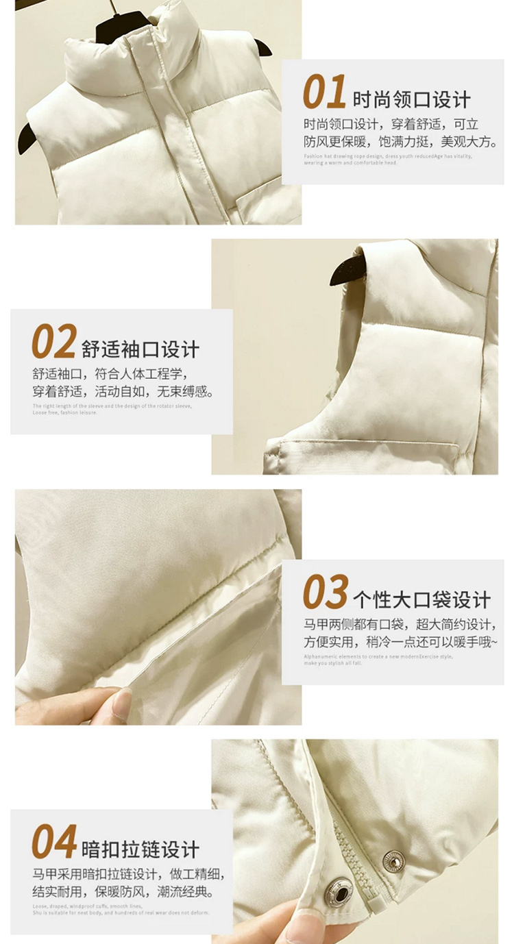 羽绒棉马甲女2019秋冬新款韩版宽松学生短款刺绣立领马夹背心外套