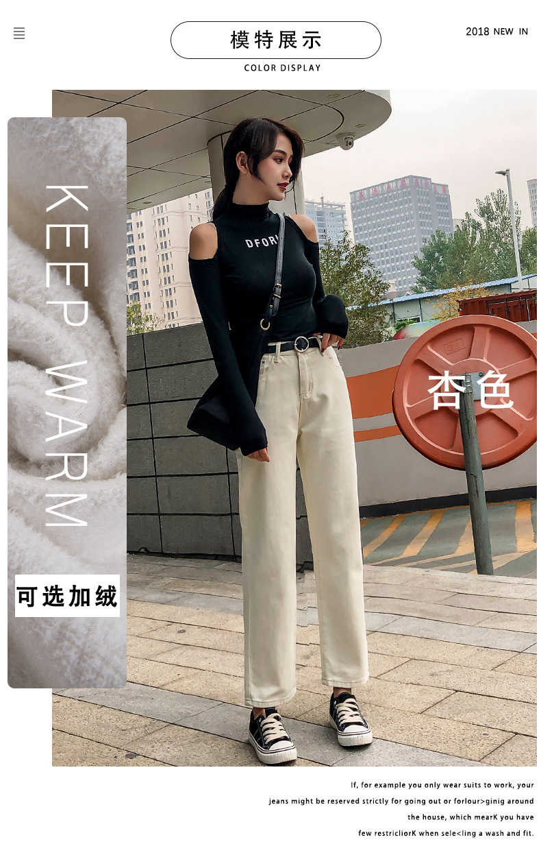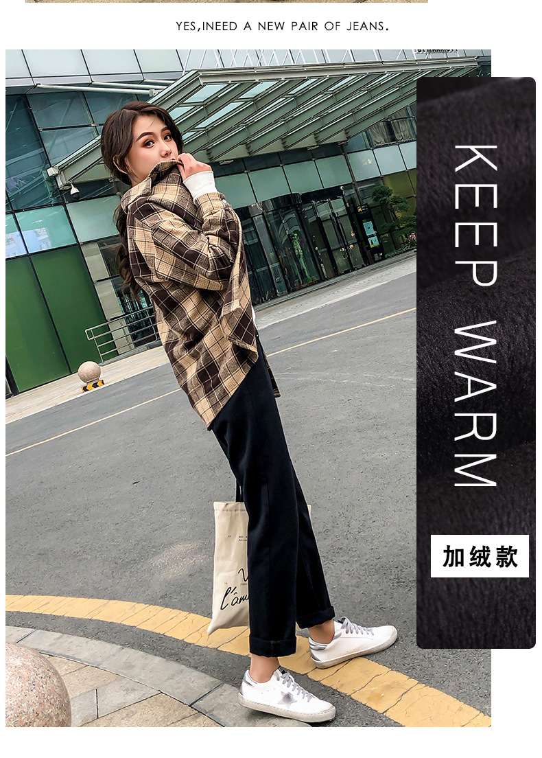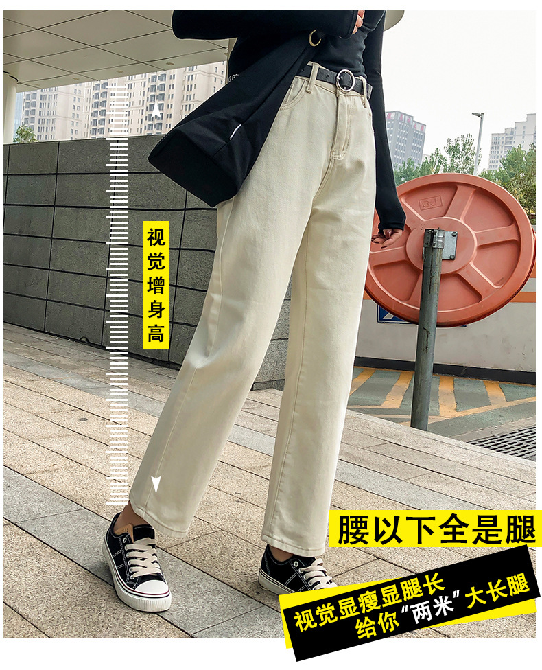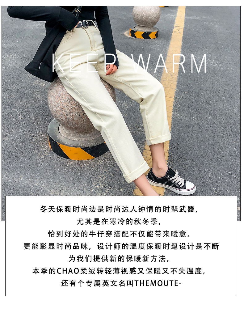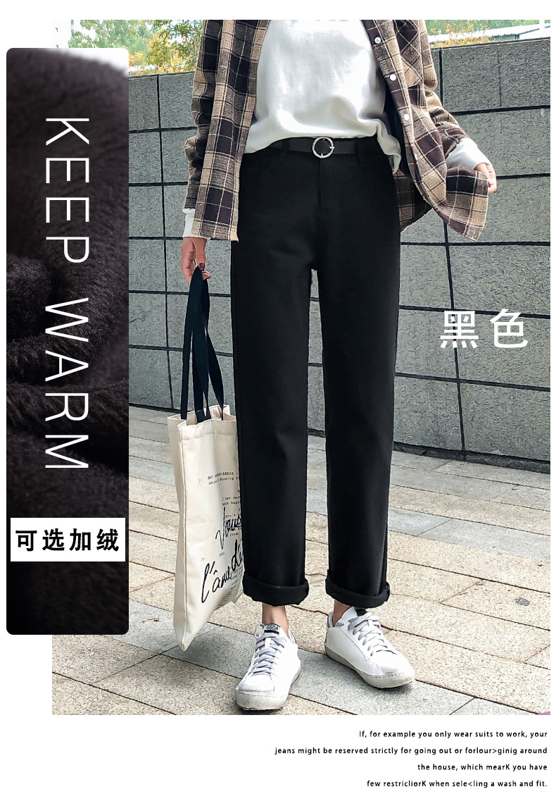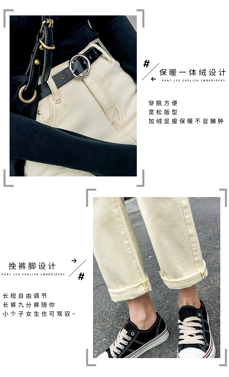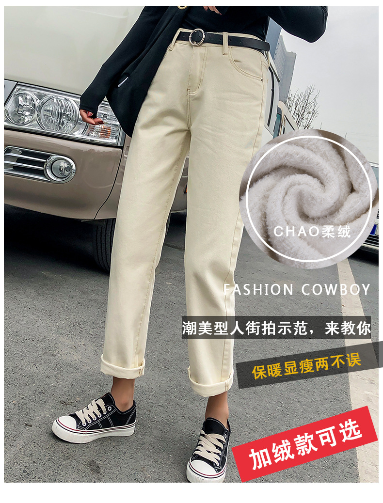 杏色牛仔裤女加绒2019新款秋冬韩版高腰黑色宽松萝卜老爹直筒裤子