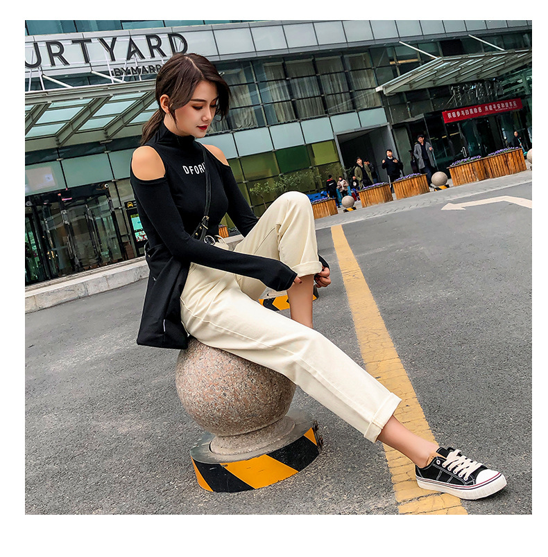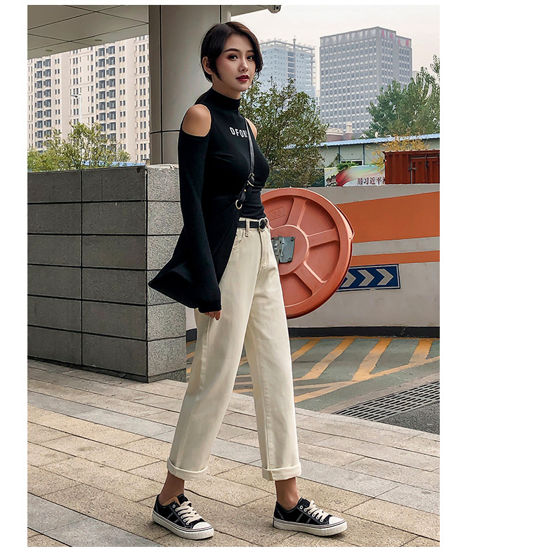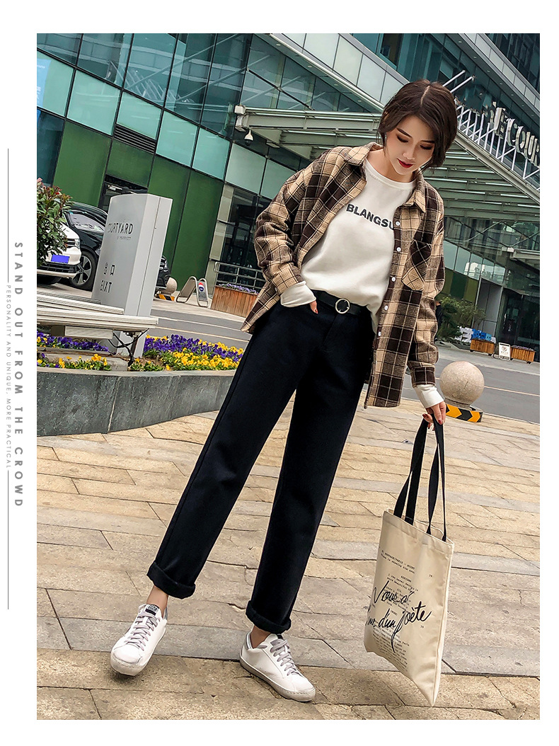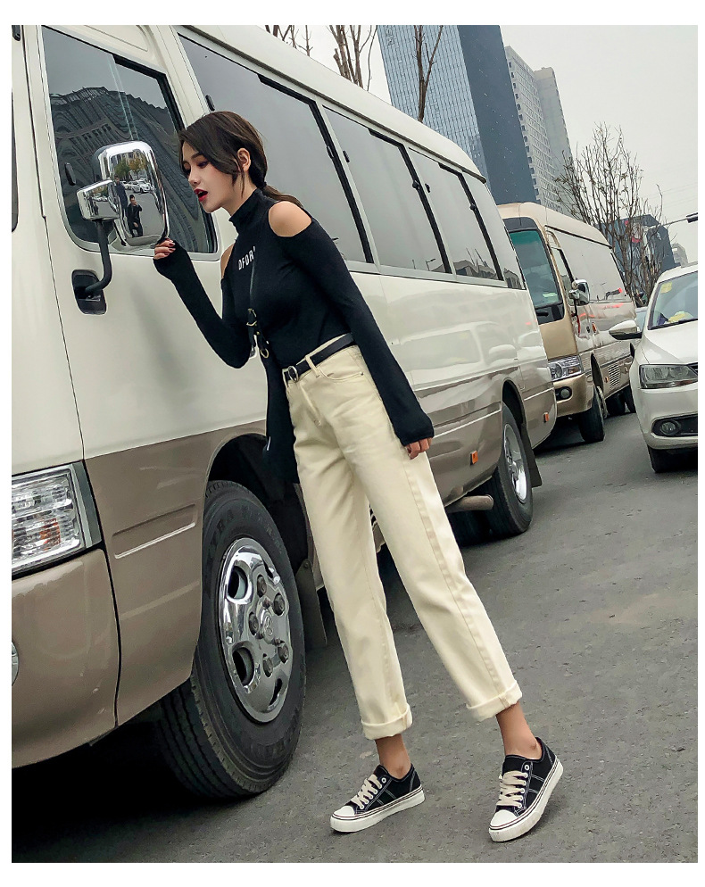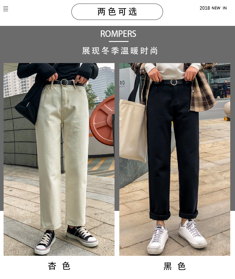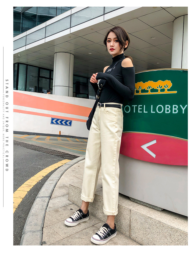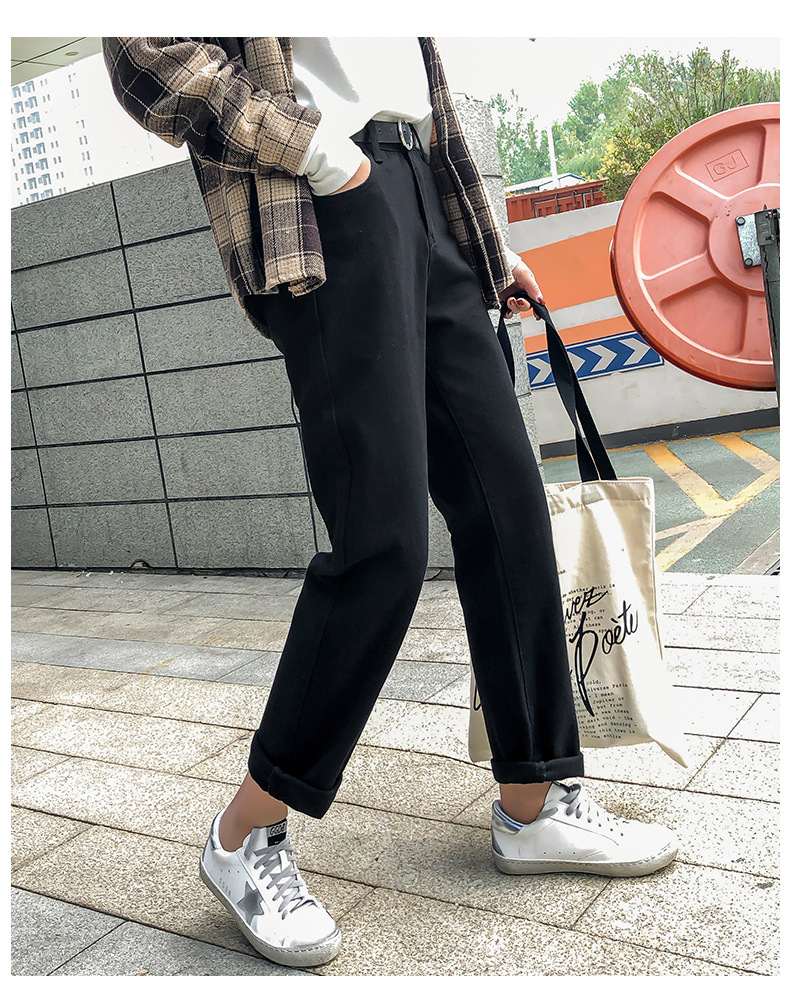 杏色牛仔裤女加绒2019新款秋冬韩版高腰黑色宽松萝卜老爹直筒裤子