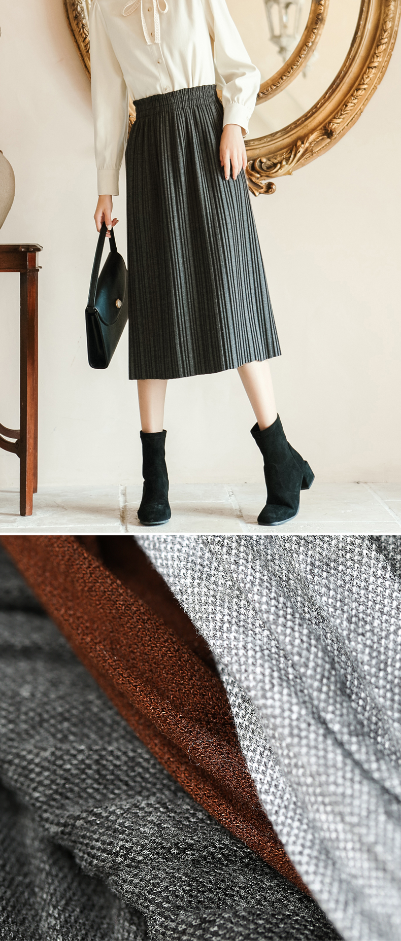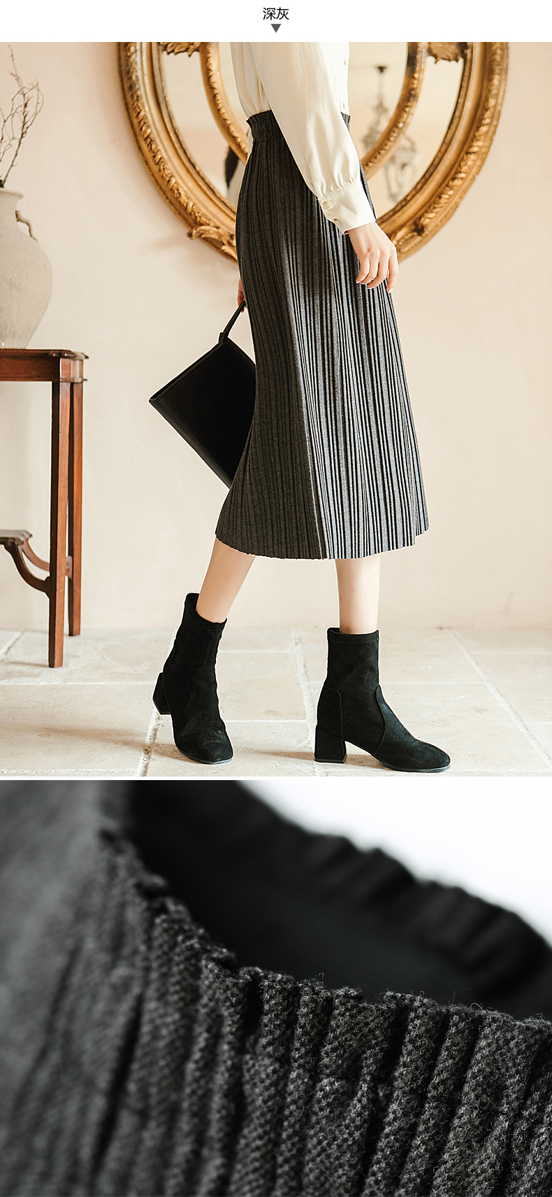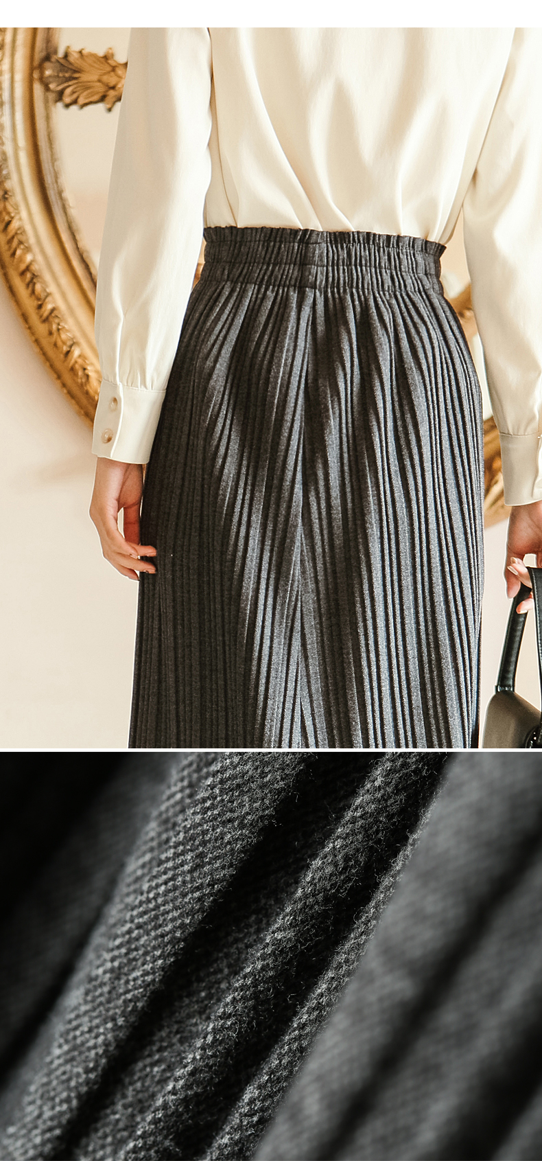 【棉立方旗舰店】网红秋冬a字港味复古半身裙,百搭毛呢中长款百褶裙子,轻奢撩人,彰显气质淑女风,高腰松紧腰头,轻松遮掉腹部赘肉
