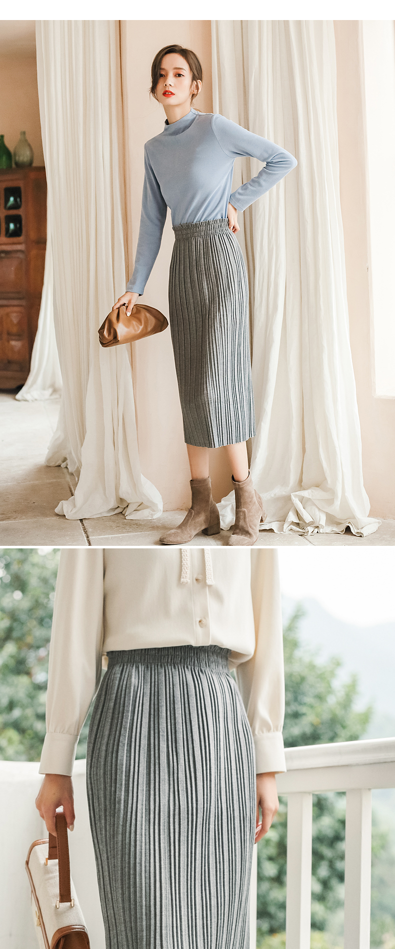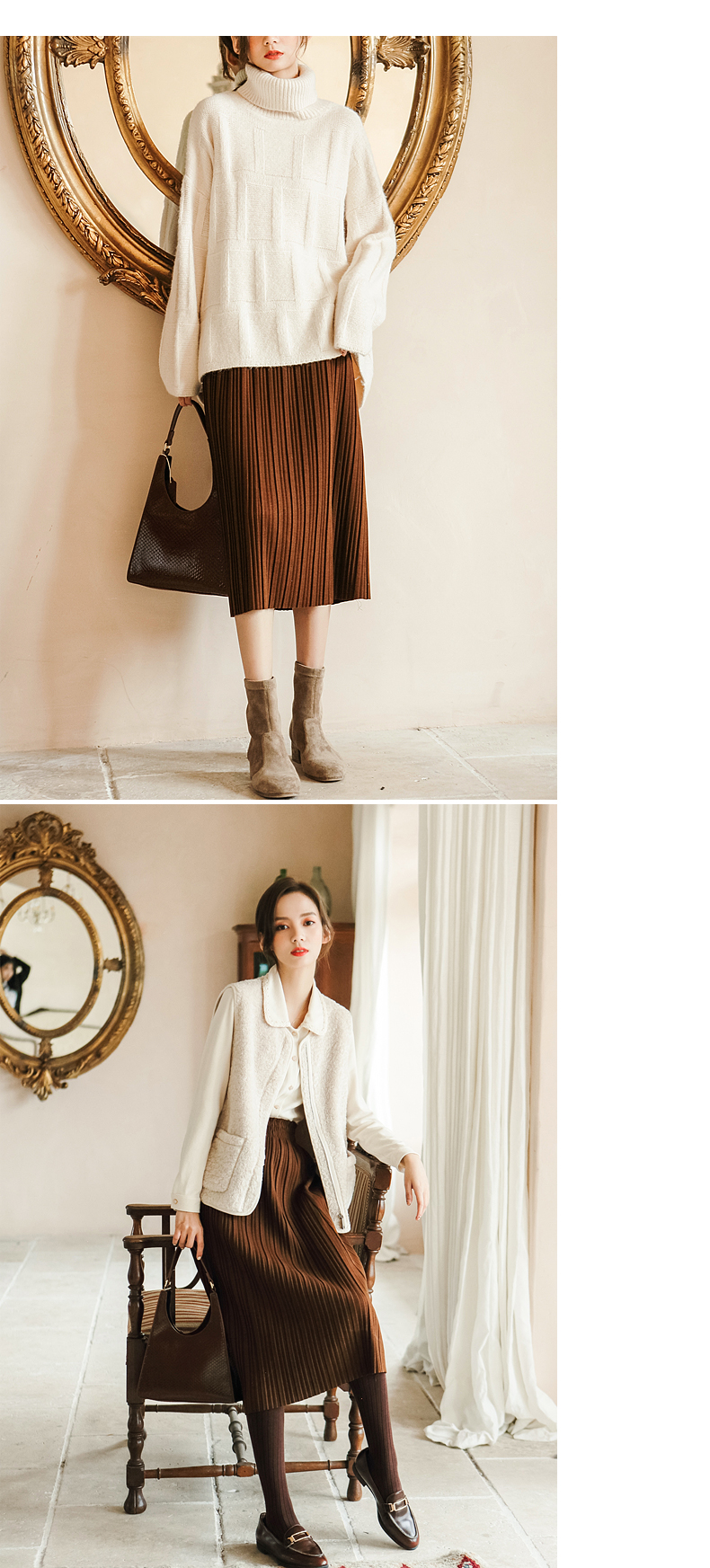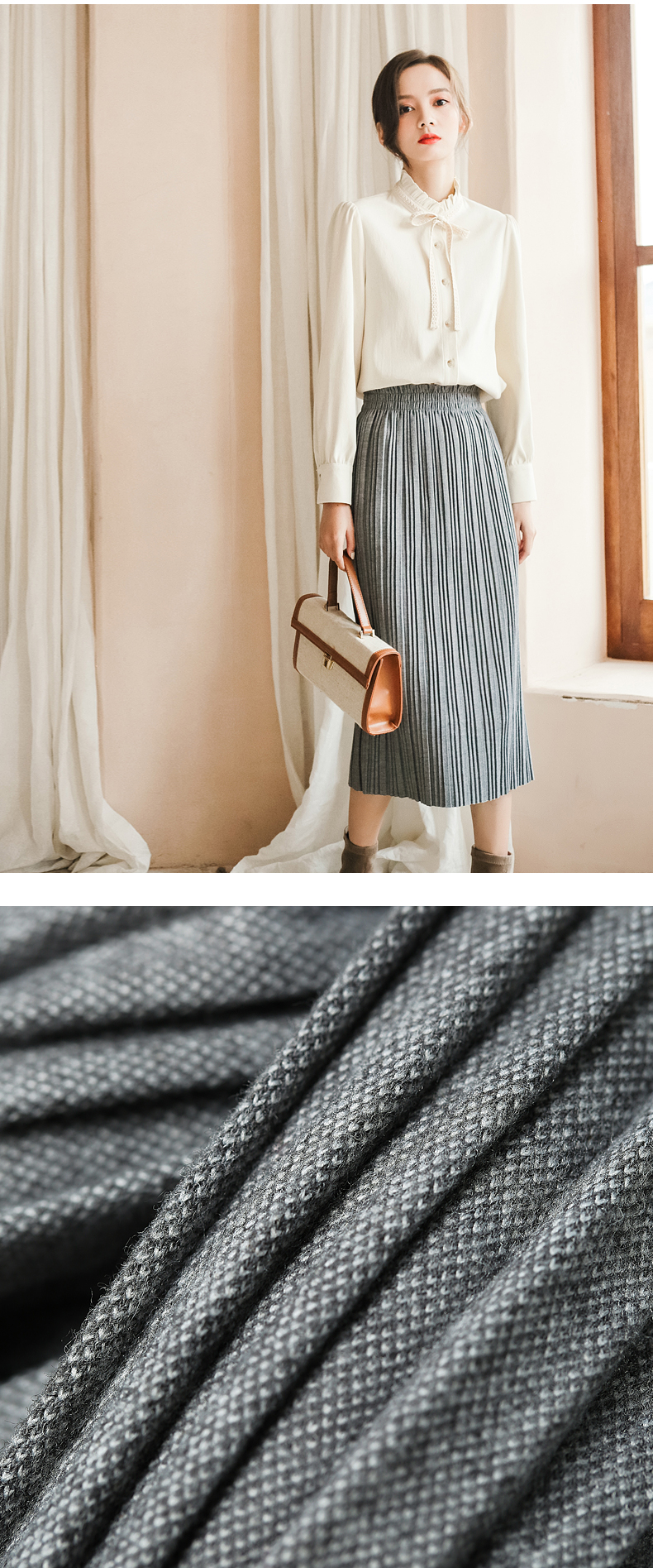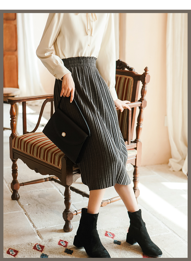 【棉立方旗舰店】网红秋冬a字港味复古半身裙,百搭毛呢中长款百褶裙子,轻奢撩人,彰显气质淑女风,高腰松紧腰头,轻松遮掉腹部赘肉