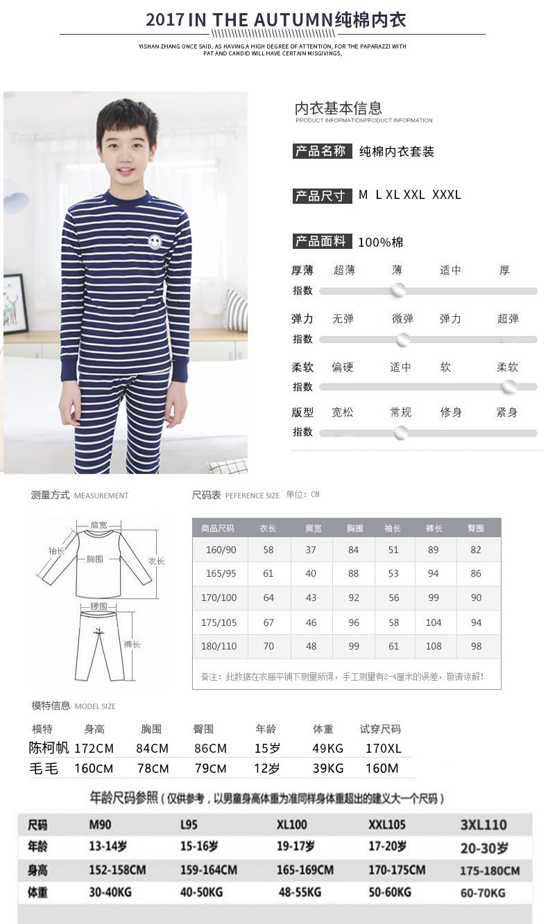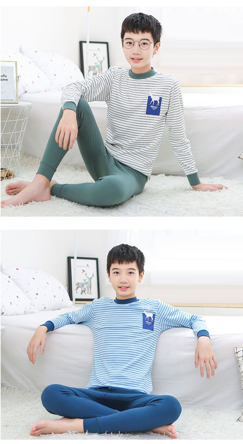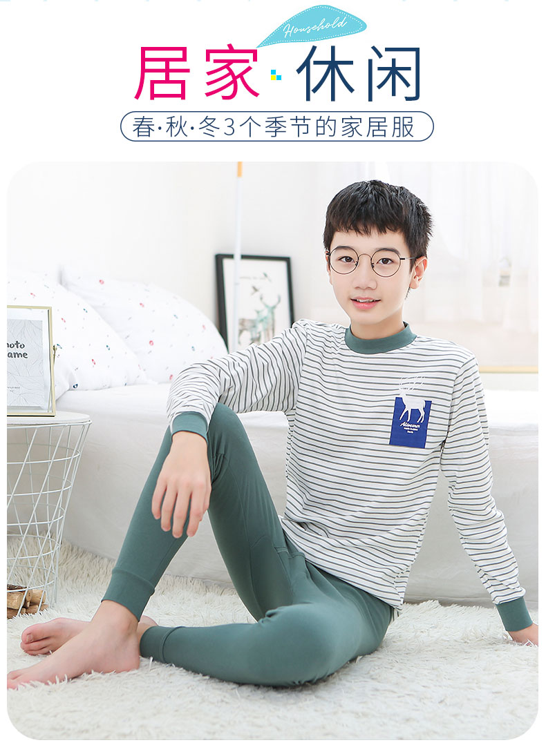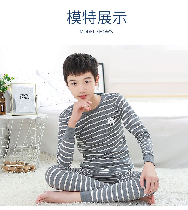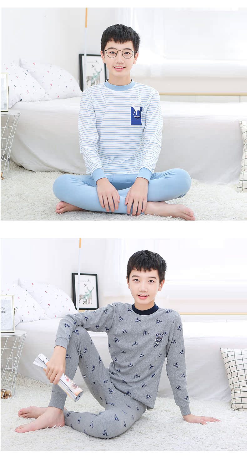 男童秋衣秋裤套装纯棉中大童男孩线衣线裤儿童内衣12全棉15岁薄款