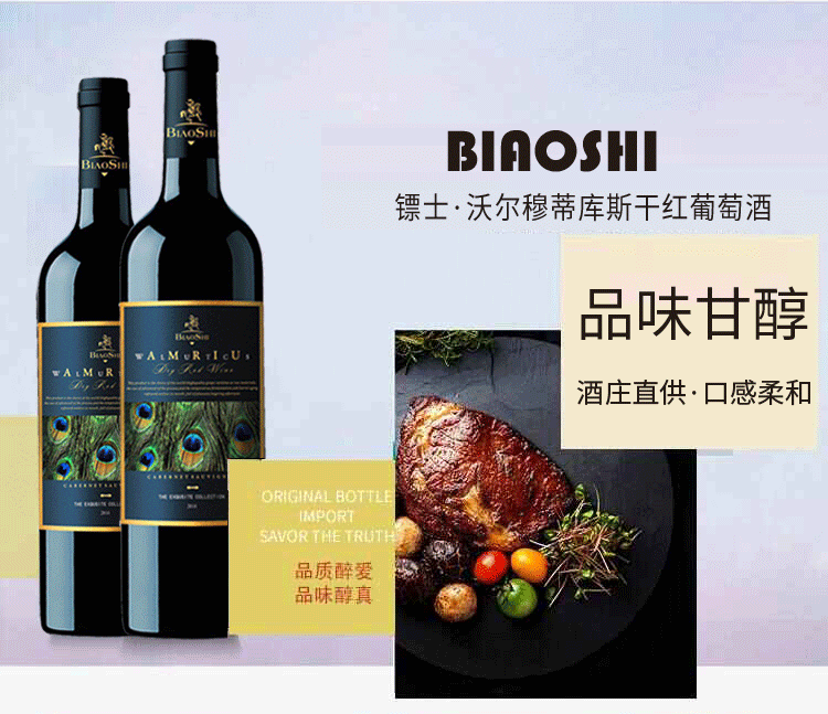 镖士沃尔穆蒂库斯14度赤霞珠干红葡萄酒六支特价双支礼盒红酒