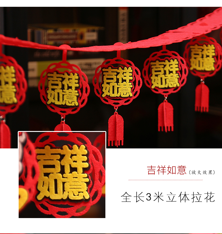 新年装饰挂件,甄选加厚无纺布,结实耐用,手撕不变形,有质感,镂空工艺,整体更加美观立体【送运费险】