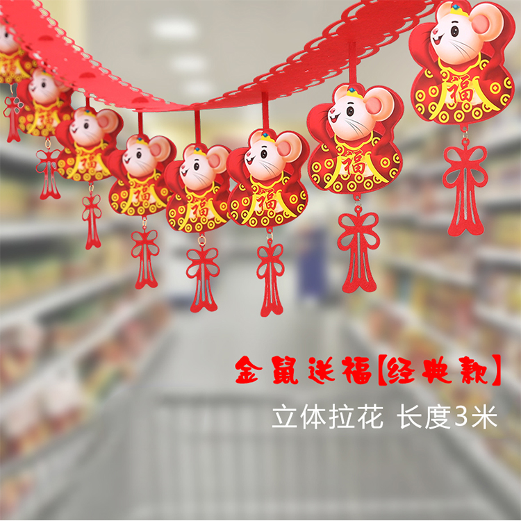 新年装饰春节过年挂件2020鼠年元旦商场场景布置用品室内拉花拉旗