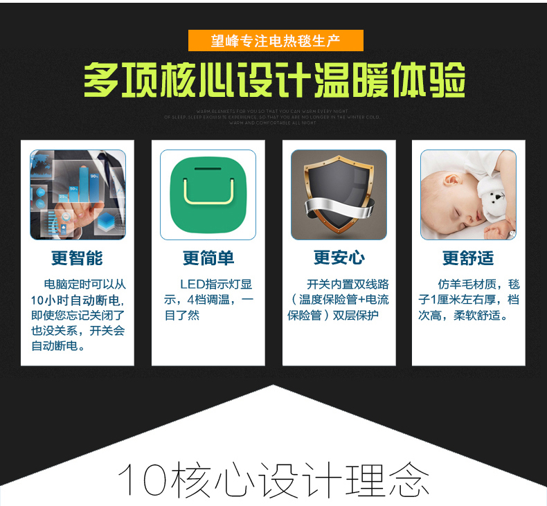 望峰电热毯双控四挡调温品质保暖,防水阻燃不漏电,防干燥不上火,快速升温,可定时,自动关闭,保持恒温,面料柔暖舒适,精美包装,等你来抢购。【赠运费险】