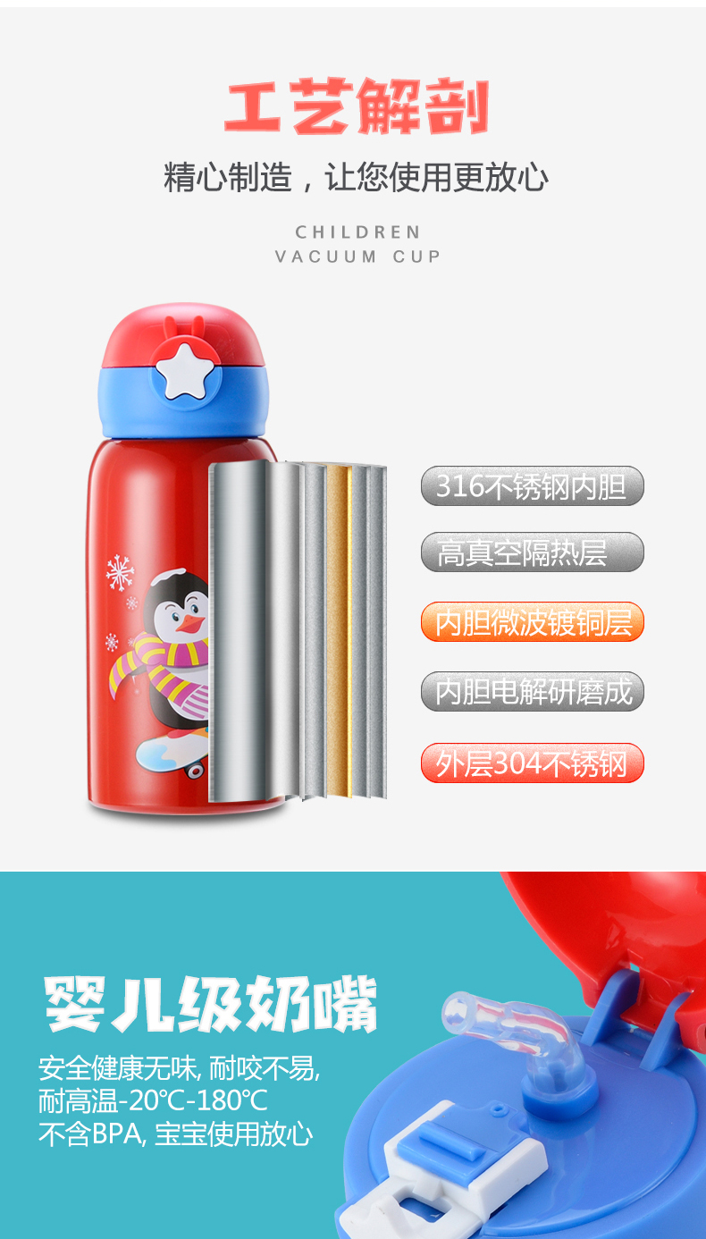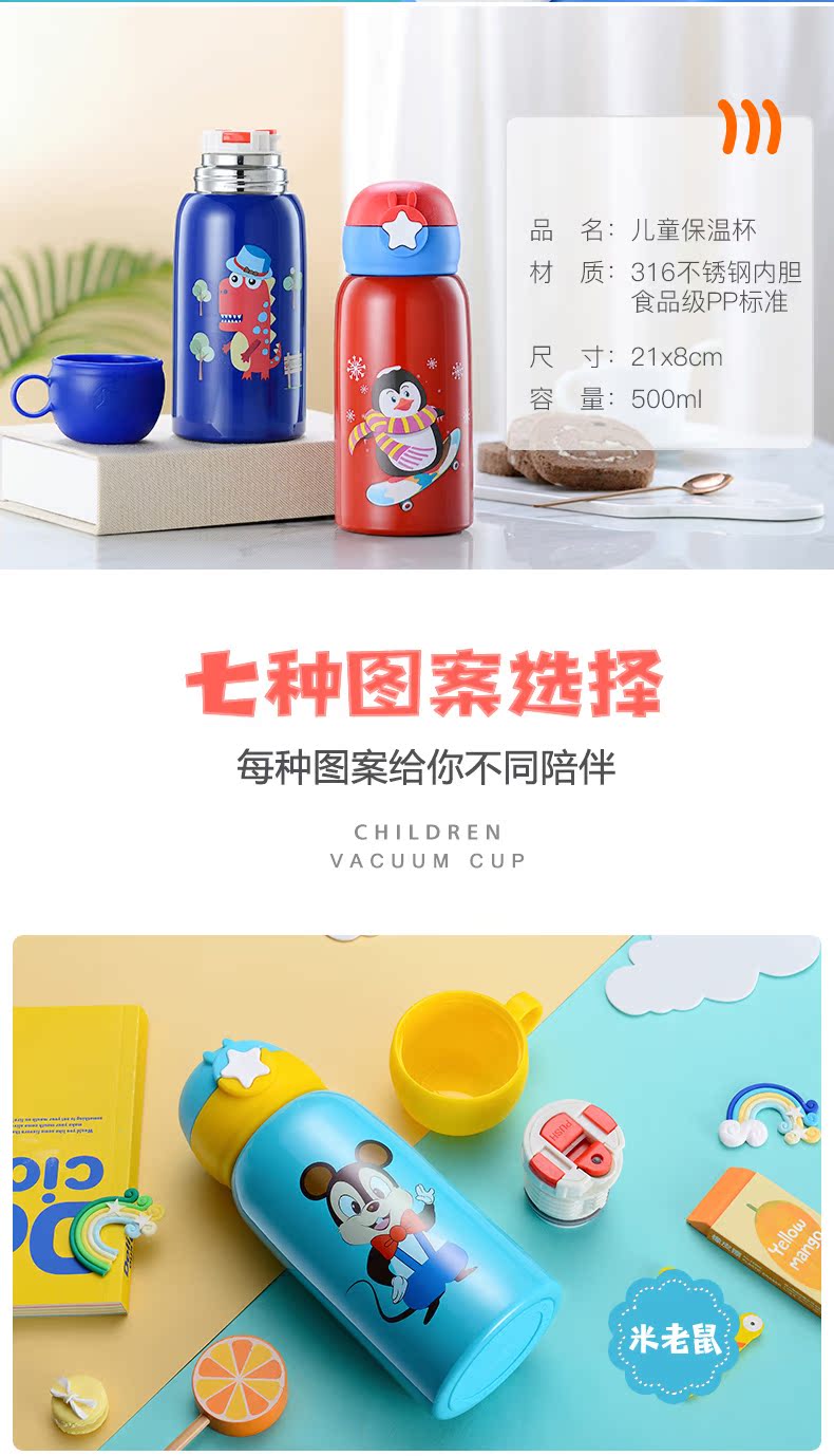 儿童保温杯带吸管 316防摔水杯两用宝宝男女小学生便携不锈钢水壶